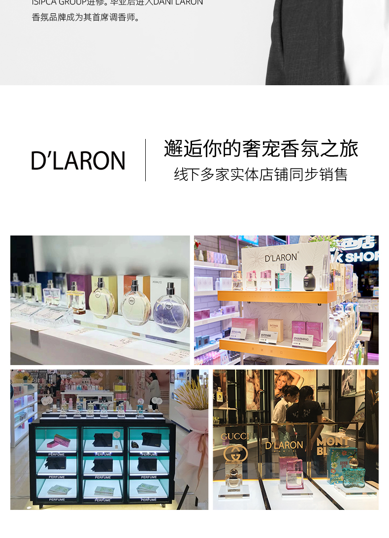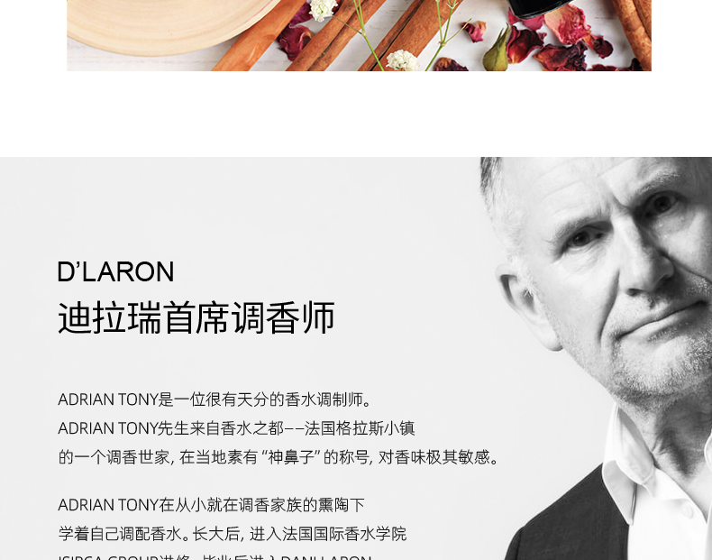 D'LARON为带香者起舞,为持香者作歌,为绕香者吟唱,独特,珍贵,自然。萦绕着D'LARON香芬,简单而纯粹,为自己的自然坚持,为自己的独特渴望,最自然的香,最初的自己。