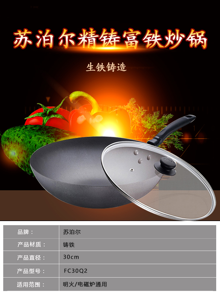 苏泊尔(SUPOR)铸铁炒锅VC32JF01 直径32cm炒锅