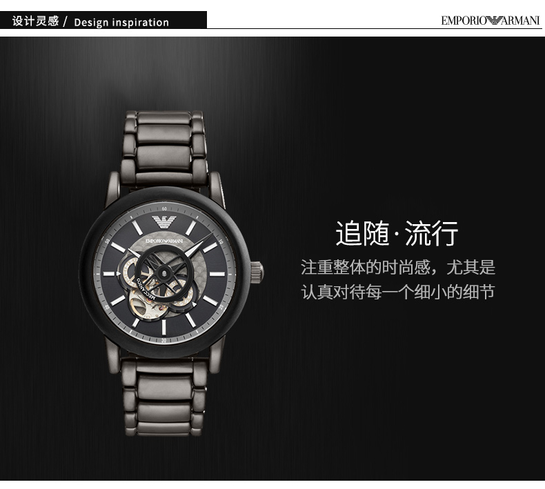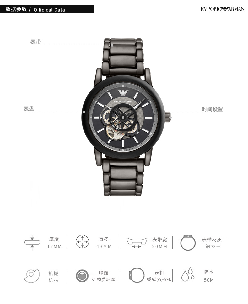 阿玛尼 Emporio Armani手表机械表钢带时尚休闲个性男士全自动镂空机械腕表 AR60010