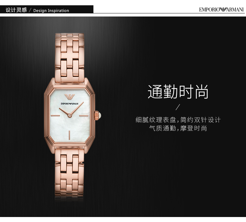 1975年由时尚设计大师乔治·阿玛尼(Giorgio Armani)创立于意大利米兰,他以使用新型面料及优良制作而闻名。阿玛尼品牌标志是由一只在往右看的雄鹰变形而成。2014年5月15日,乔治·阿玛尼完成了对A|X Armani Exchange剩余50%股份的收购,实现对该品牌100%控股。该品牌目标群体是年轻人。