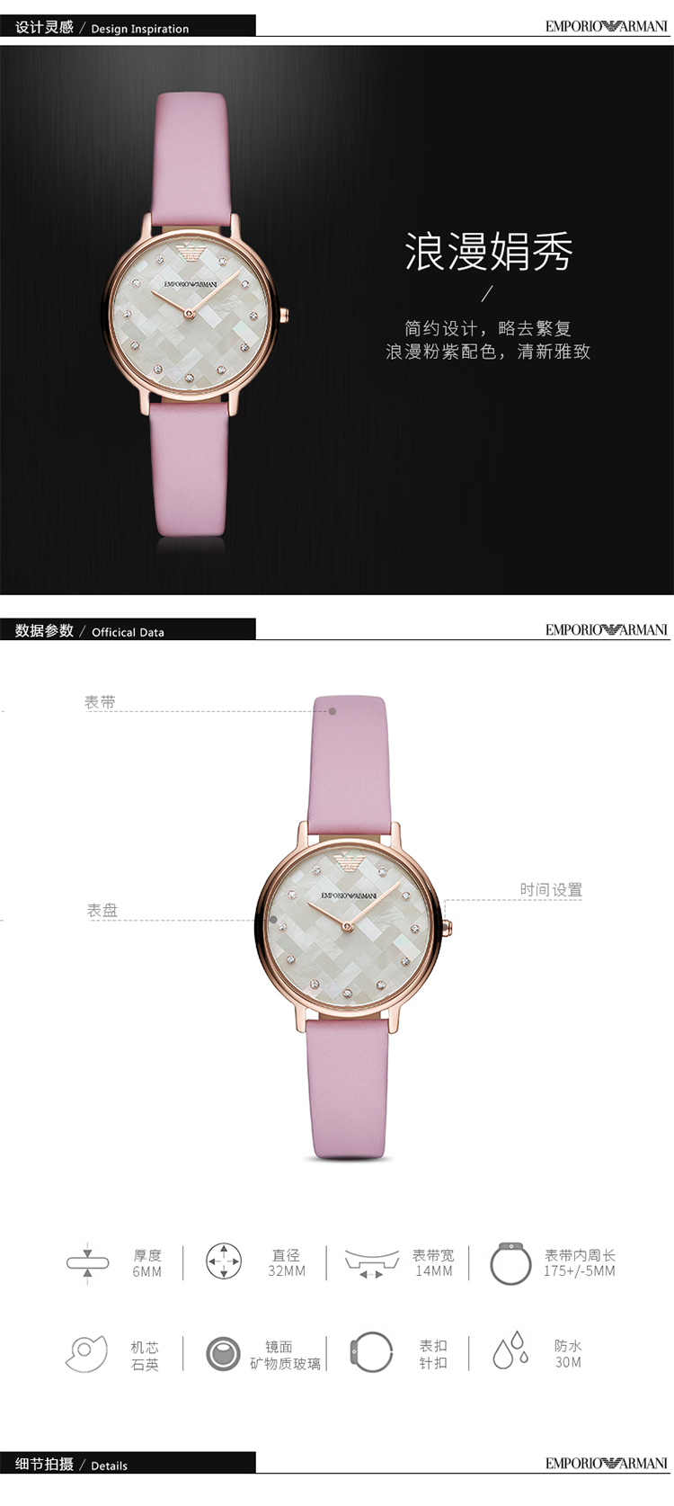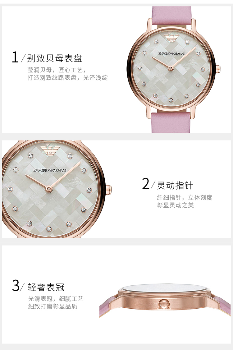 Armani阿玛尼女手表正品镶钻石英表牛皮带腕表时尚装饰表AR11130