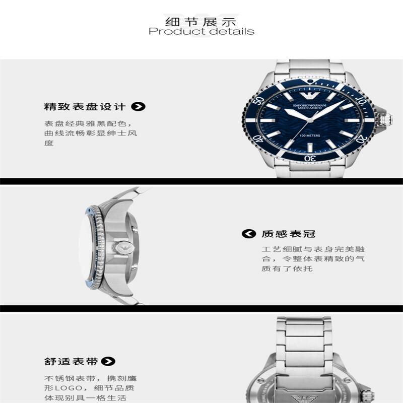 【全国联保 顺丰发货】Armani阿玛尼正品男士手表蓝色表盘 简约钢带商务石英表男AR1648