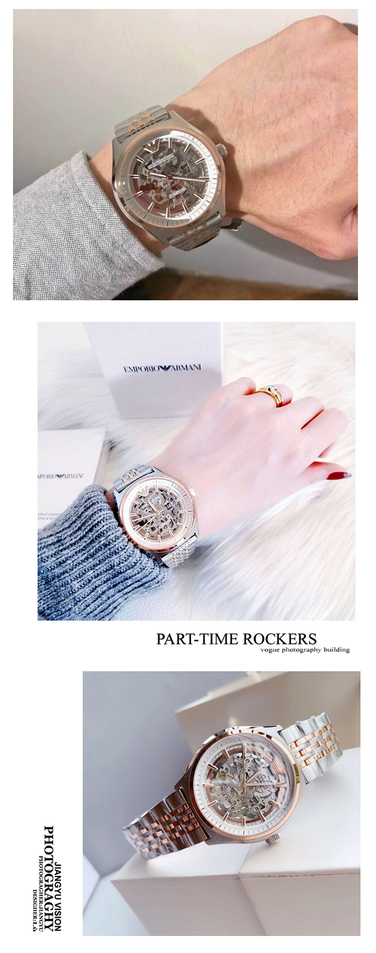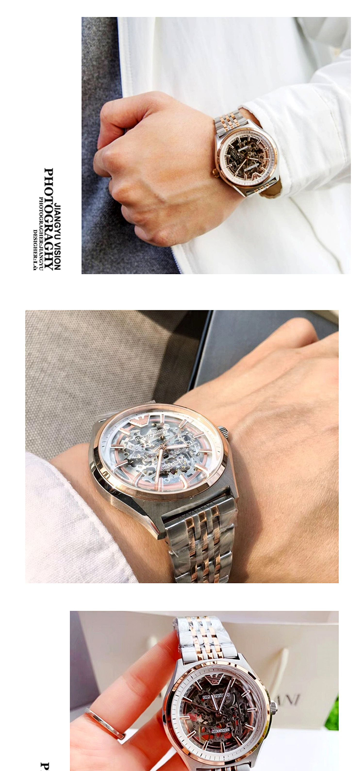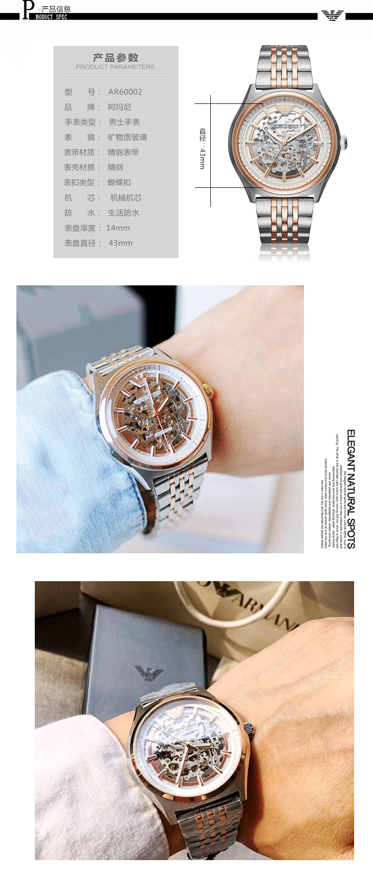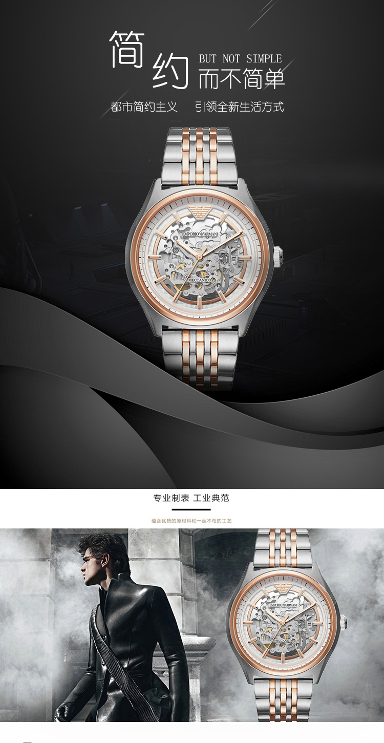 阿玛尼EMPORIO ARMANI Armani阿玛尼手表男时尚大气商务简约正品镂空机械腕表AR60003