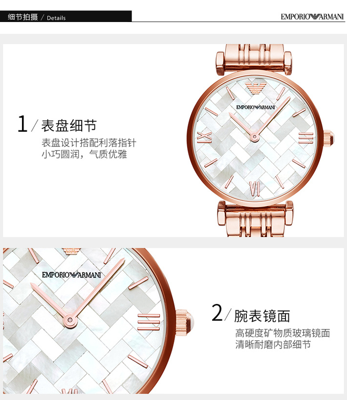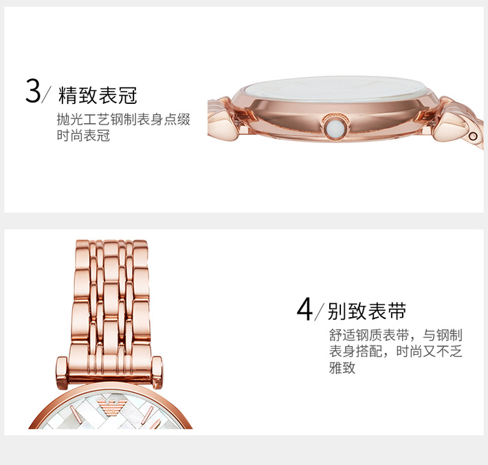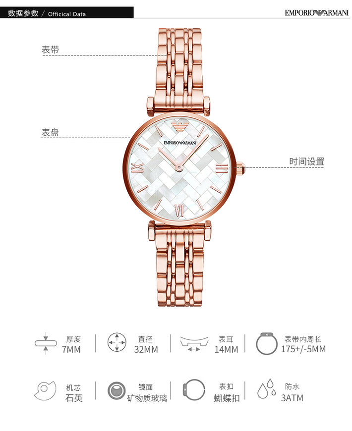 Armani阿玛尼手表女满天星贝母表盘玫瑰金钢带款女士腕表AR11110