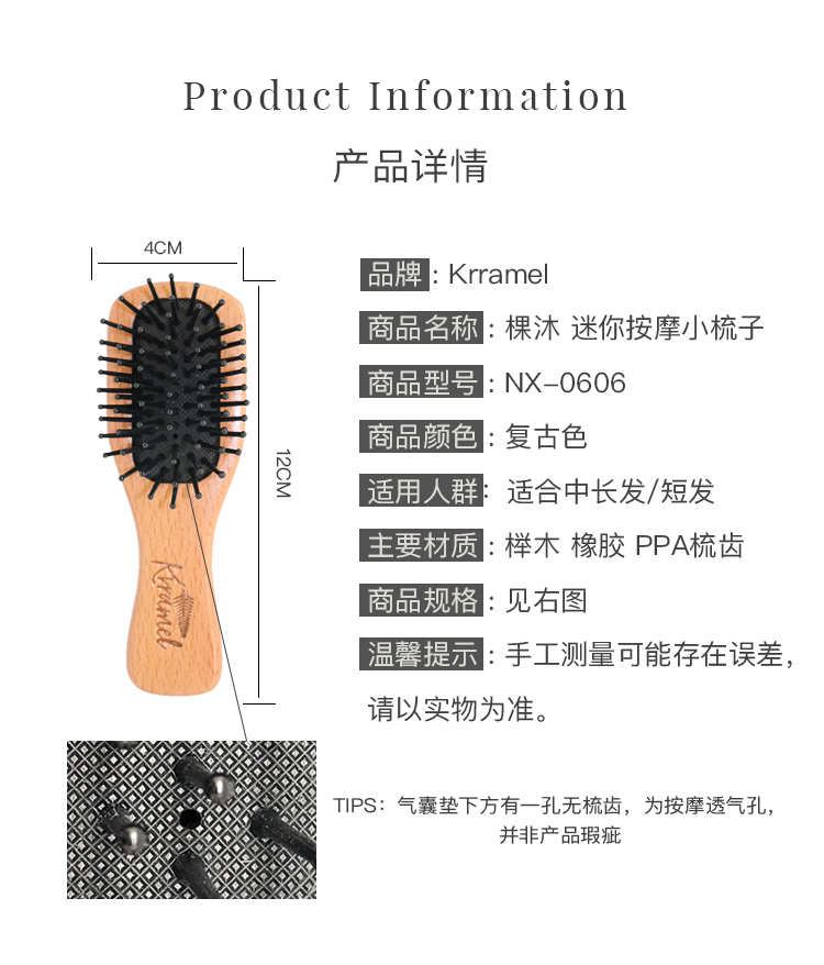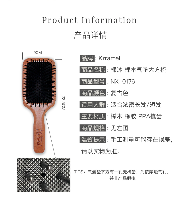 德国进口榉木制作 ,乳胶按摩气囊!一把真正可以按摩头皮的梳子!大S,范冰冰等众多明星都推荐过的按摩梳的版本!英国肯*特同工厂出品,戴安娜王妃同款梳! 内含卡片、礼盒,塑封袋!德国进口榉木,有效刺激按摩头皮,减少头皮和头发的承受压力!还可以按摩肩颈脖子!