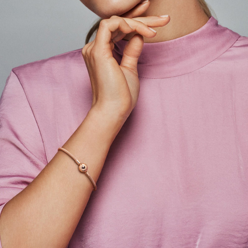 潘多拉 PANDORA 金色MOMENTS PANDORA ROSE 编织手链 586543-17