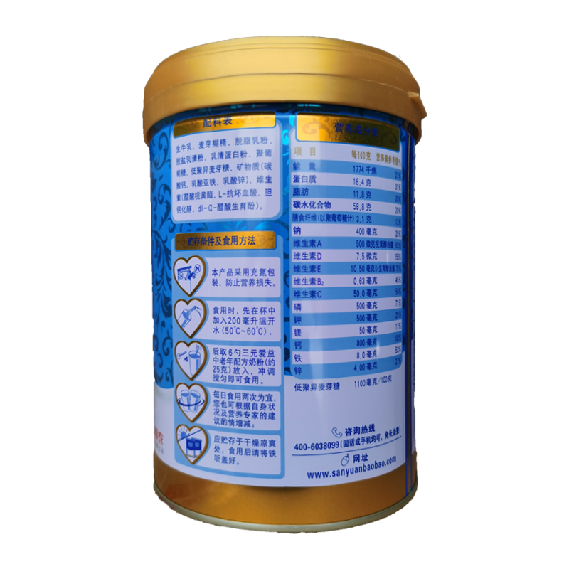 【三高人群奶粉 送礼袋】素儿美滋三降密码贝比滋中老年无蔗糖脱脂高钙富硒羊奶粉800克