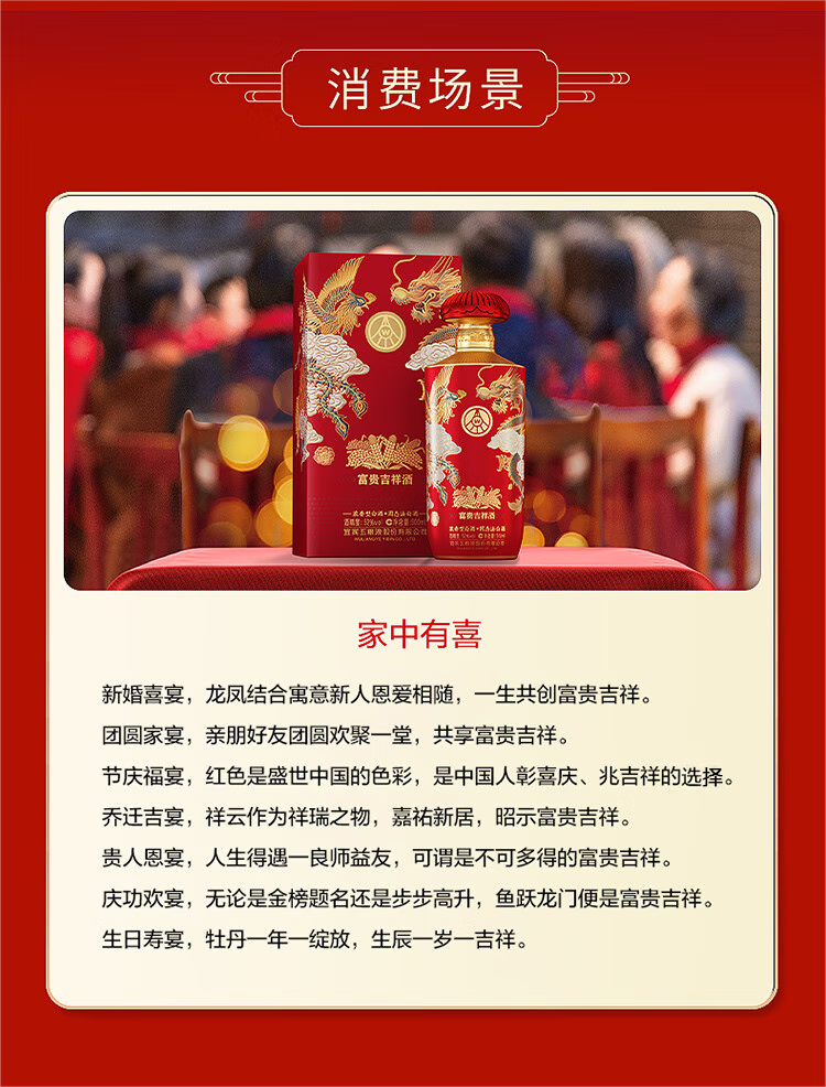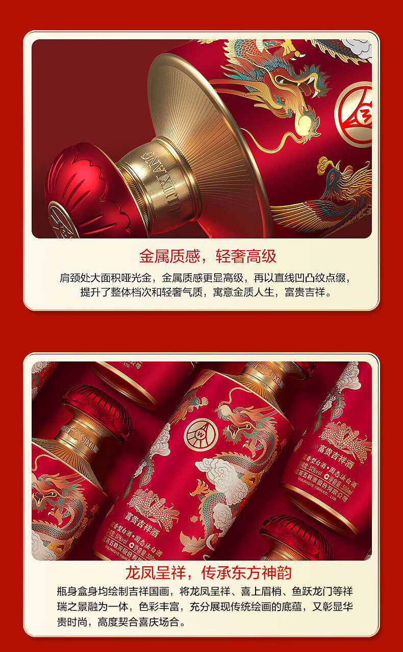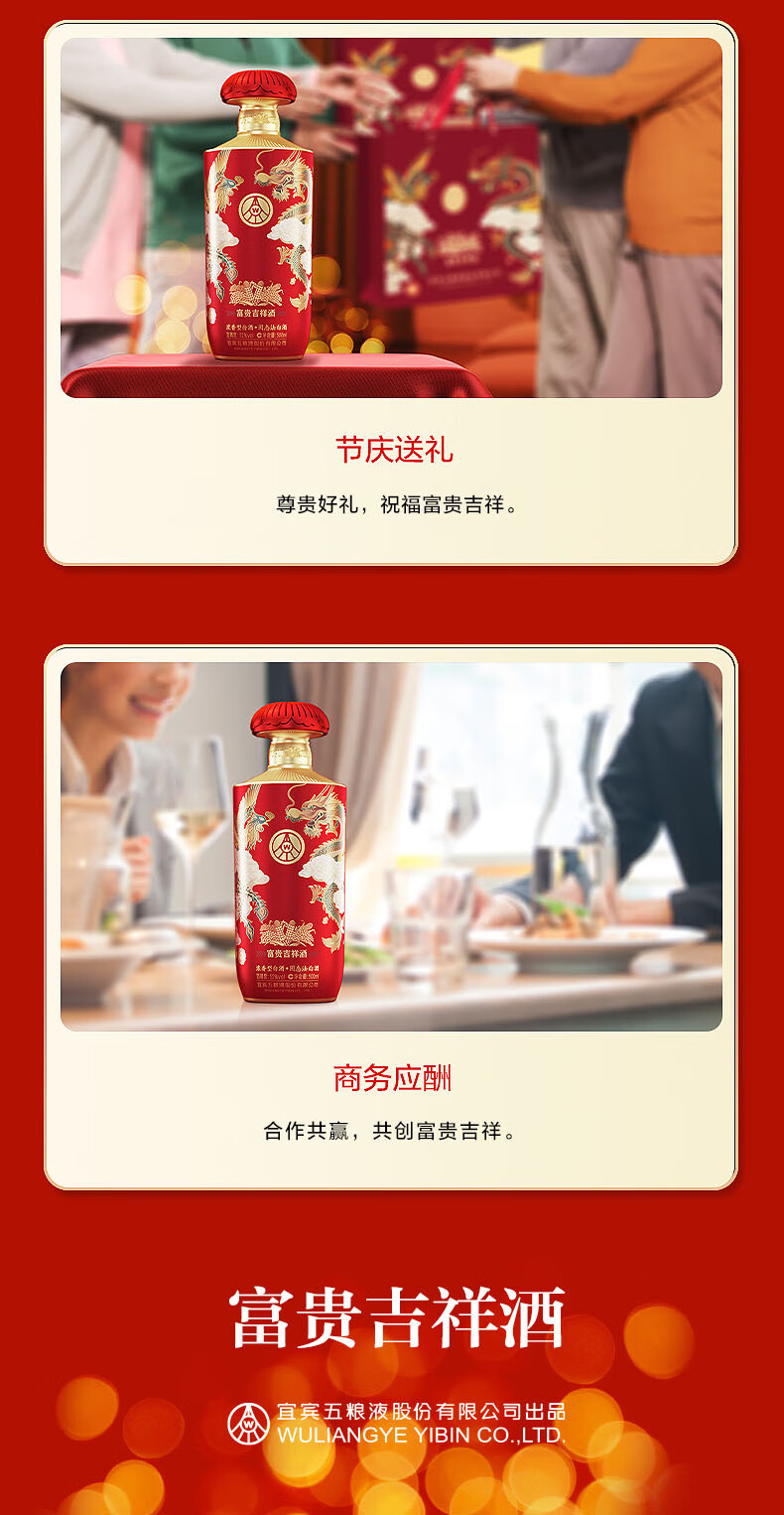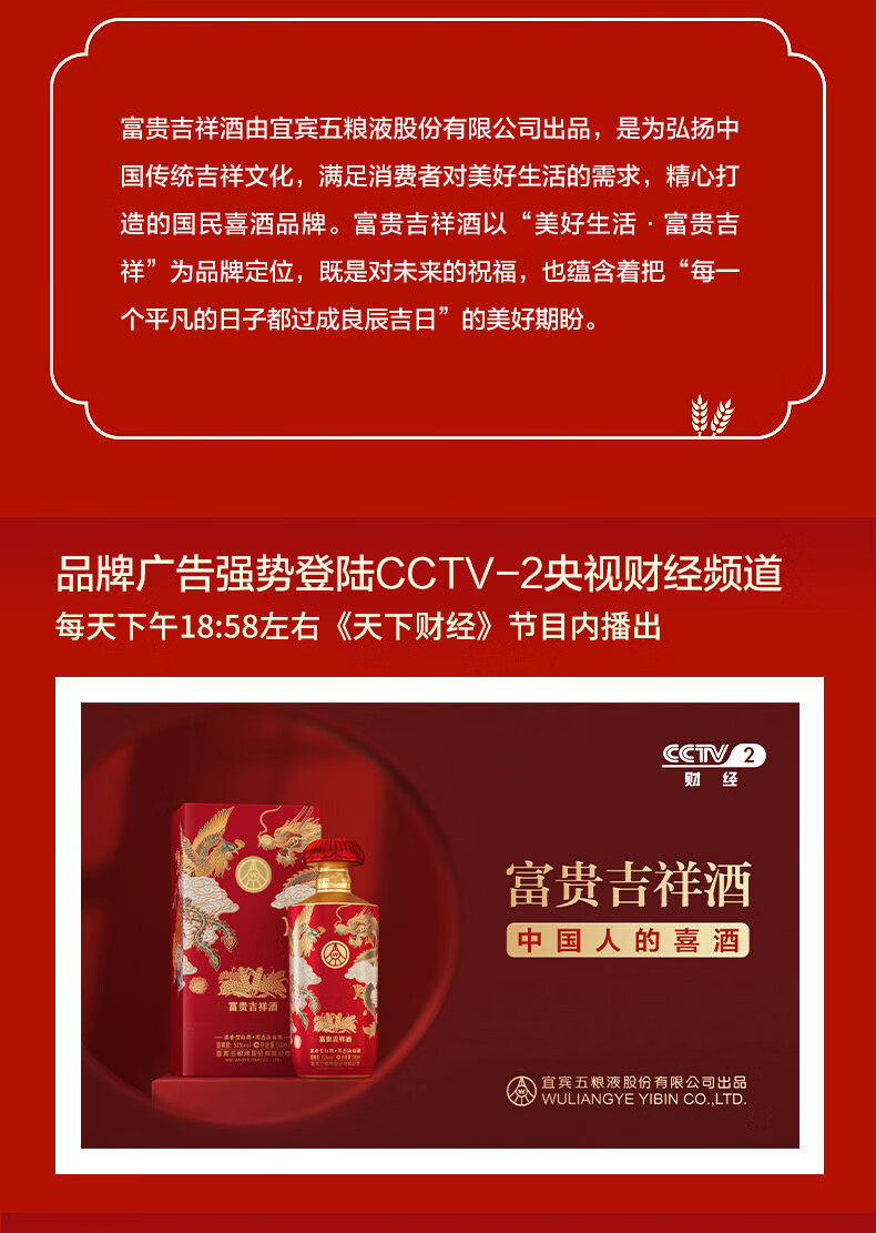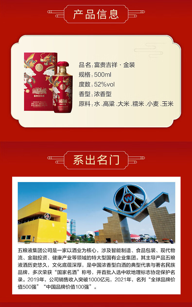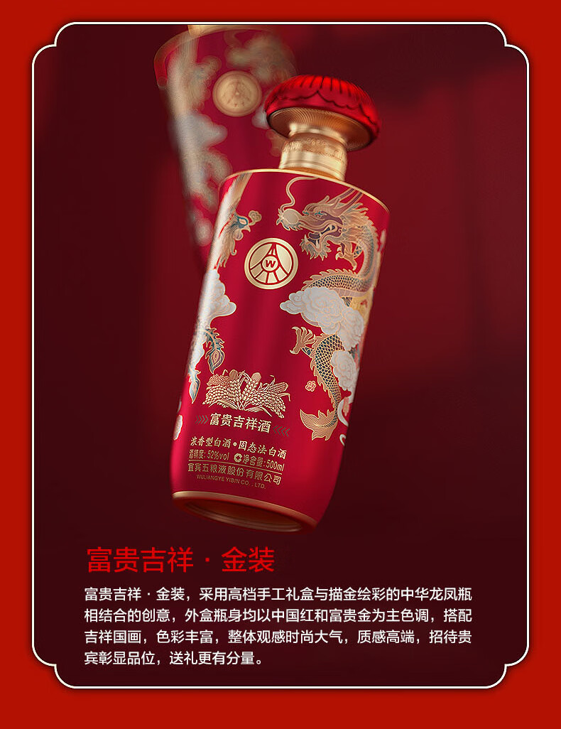 五粮液股份 富贵吉祥金装 纯粮食浓香型白酒 52度500ml*6瓶 中秋送礼