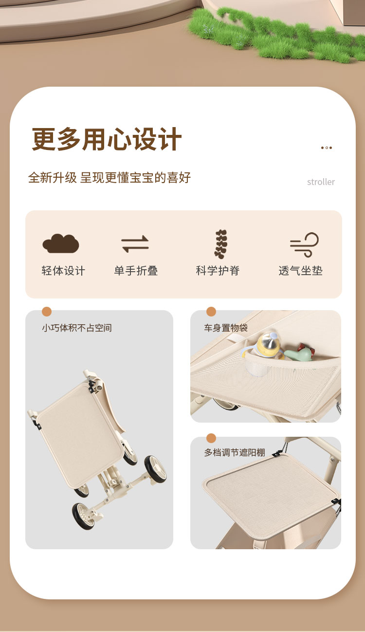 (新品首发)宝宝好V7-焦糖奶茶溜娃神器超轻便可折叠儿童双向手推车