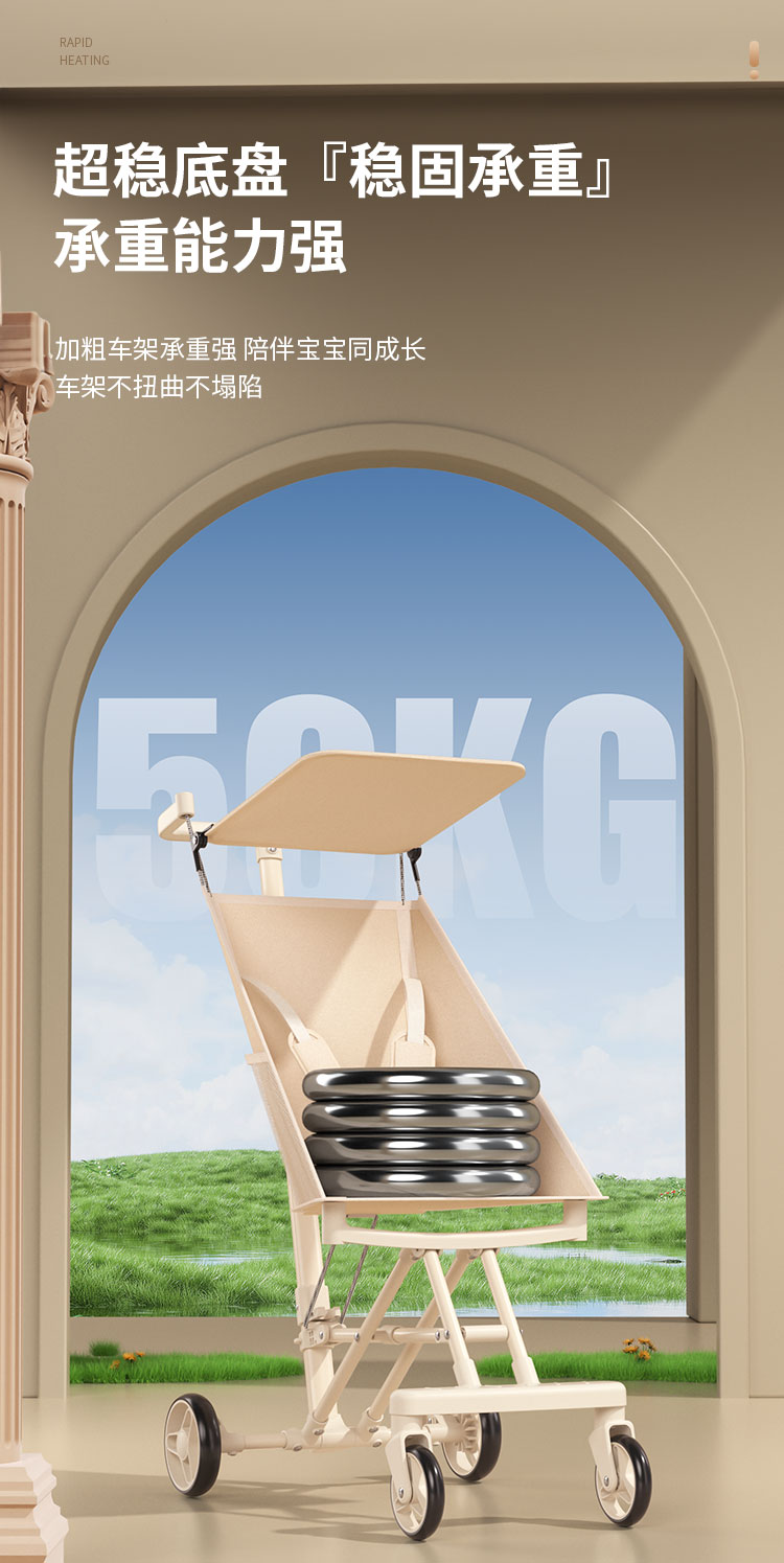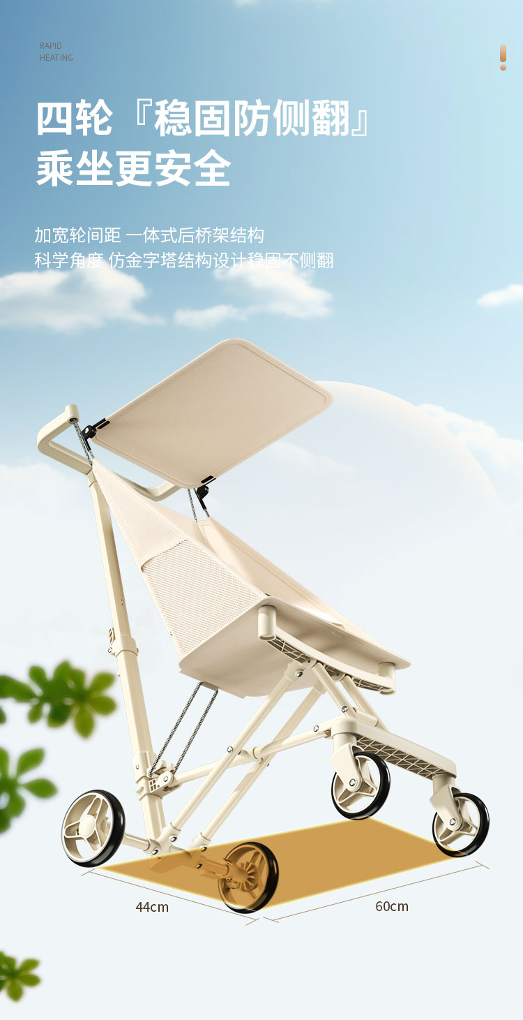 宝宝好【新款】A10三折手推车婴儿车可坐可躺便携推车可折叠童车