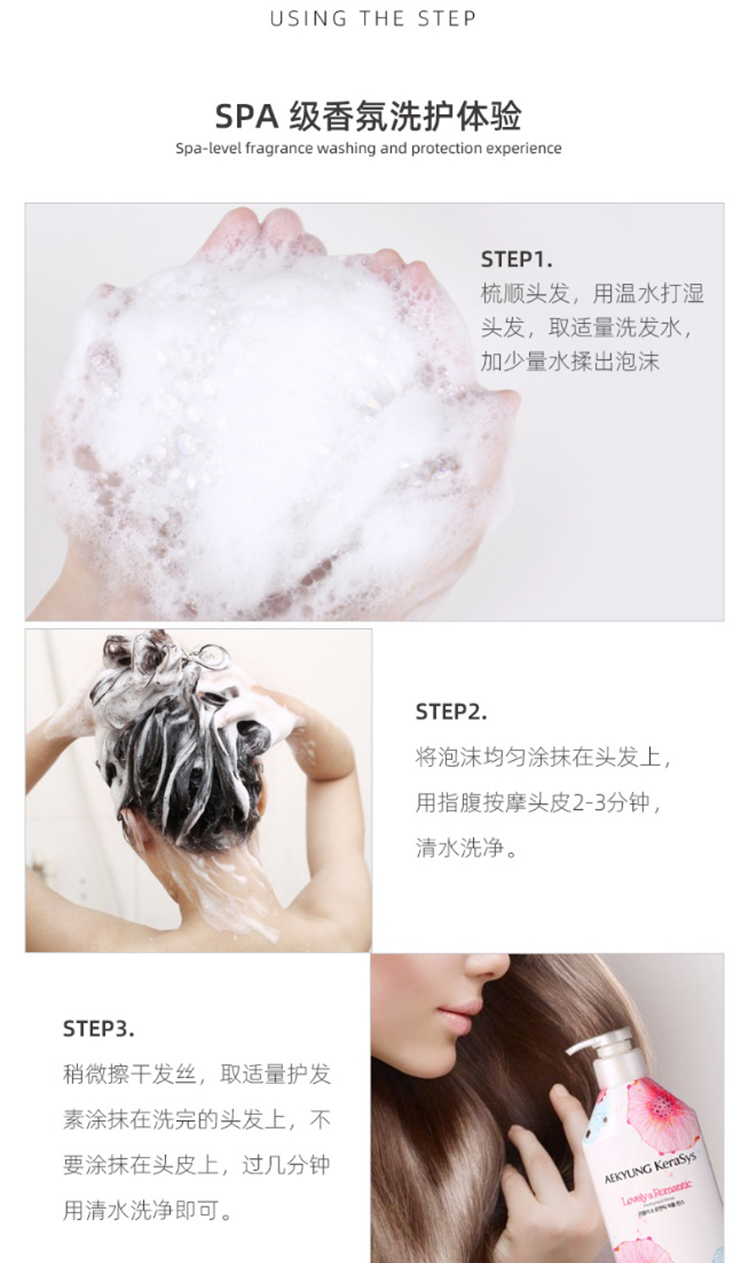 令人无法抗拒的爱情气息,持续香氛,清爽抑油,弹力丰盈,抚平干枯,令秀发润泽饱满!不止香味持久清新,更能修护受损伤发质哦~~