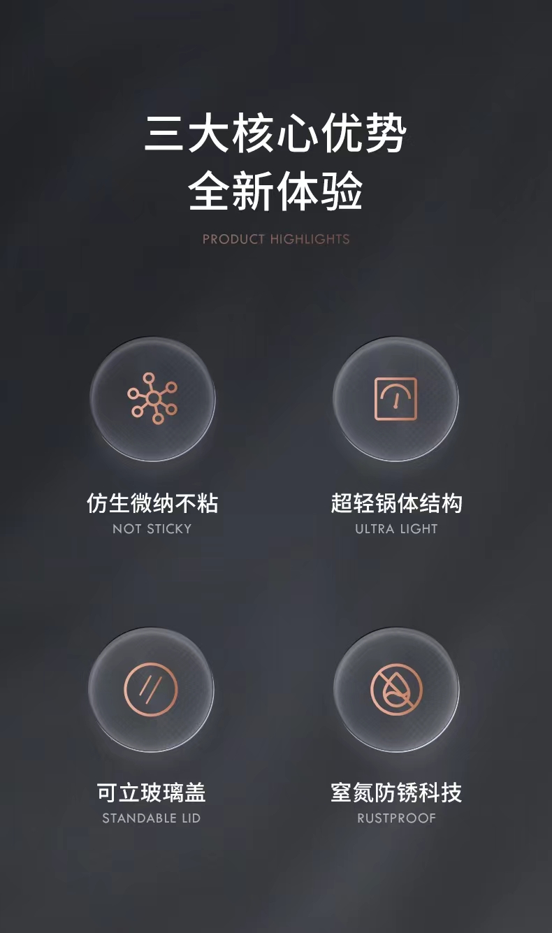 高纯度铁基材,双层复合材质,纯木质手柄,微纳米技术,防雾玻璃盖