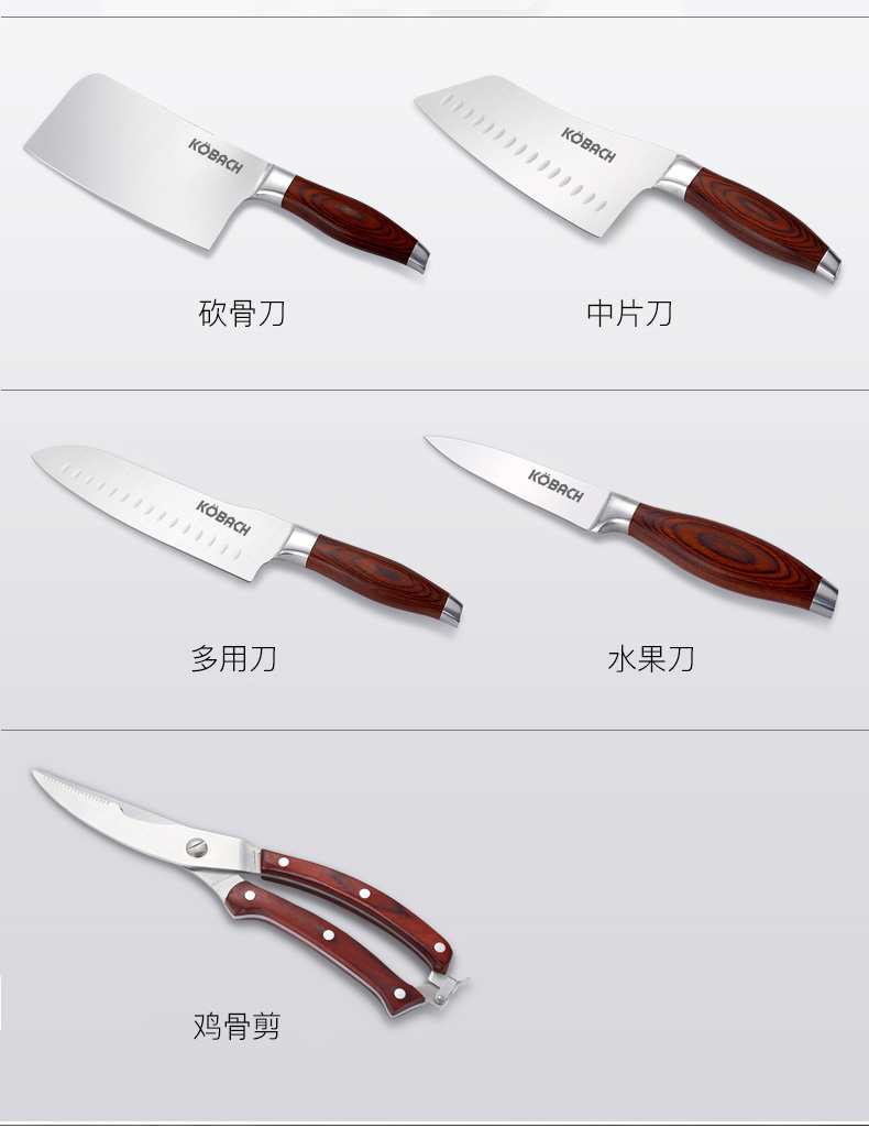德国Debo德铂 加尔文新食代刀具套装砍骨菜刀三德刀水果刀剪刀沥水刀座5件套