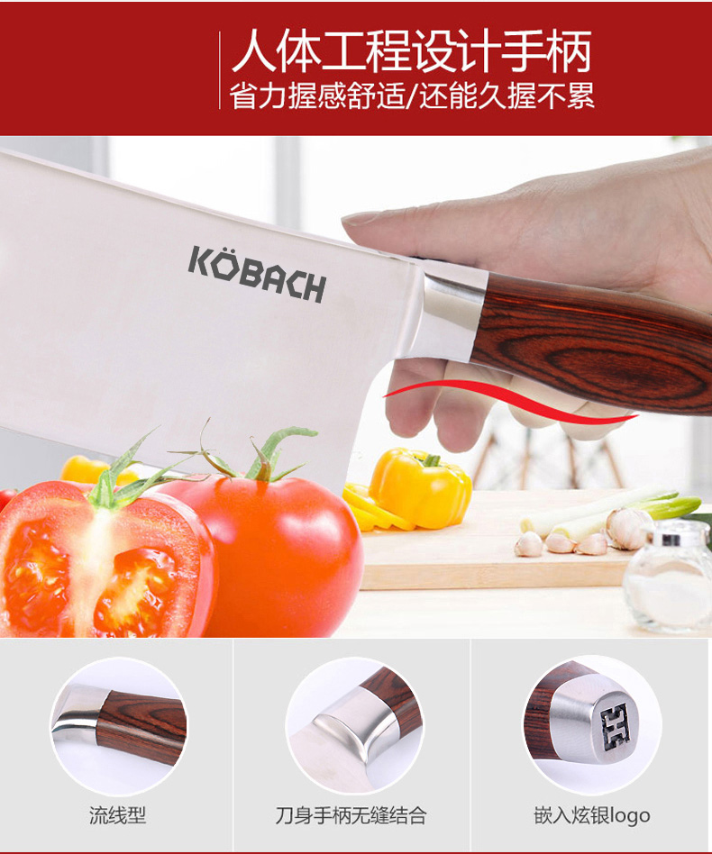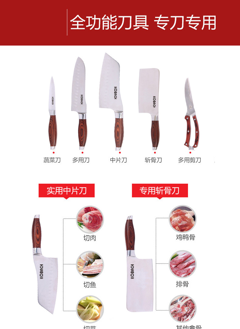 邝一刀大红色家庭7件套刀(女士刀+家庭套刀+切片刀+水果刀+厨师刀+刮皮刀+多功能剪刀)