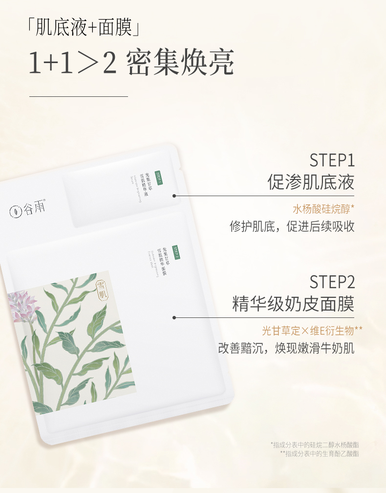 谷雨诞生于2016年,是专研中国人肤质的功效型植萃护肤品牌,起源于中国传统“时节文化”,在深入研究中国人肤质特点的基础上,运用现代科技萃取珍贵植物成分。谷雨作为国内光甘草定美白开拓者和专家,专研光甘草定,从原料-配方-检测-生产 [8],形成“全产业链”研发壁垒,拥有诸多核心配方专利及独家应用技术,提供更适合中国人肤质的美白产品,打造中国女性独有的仙气白