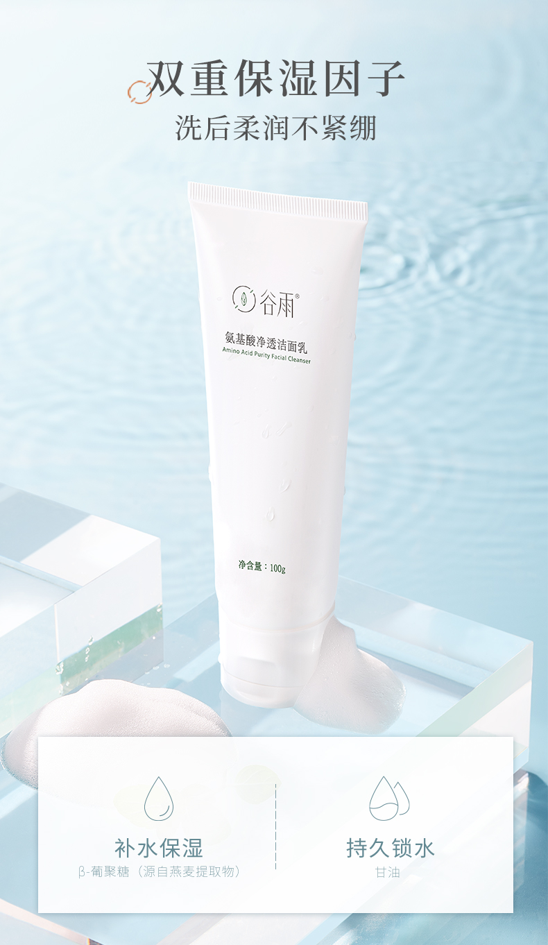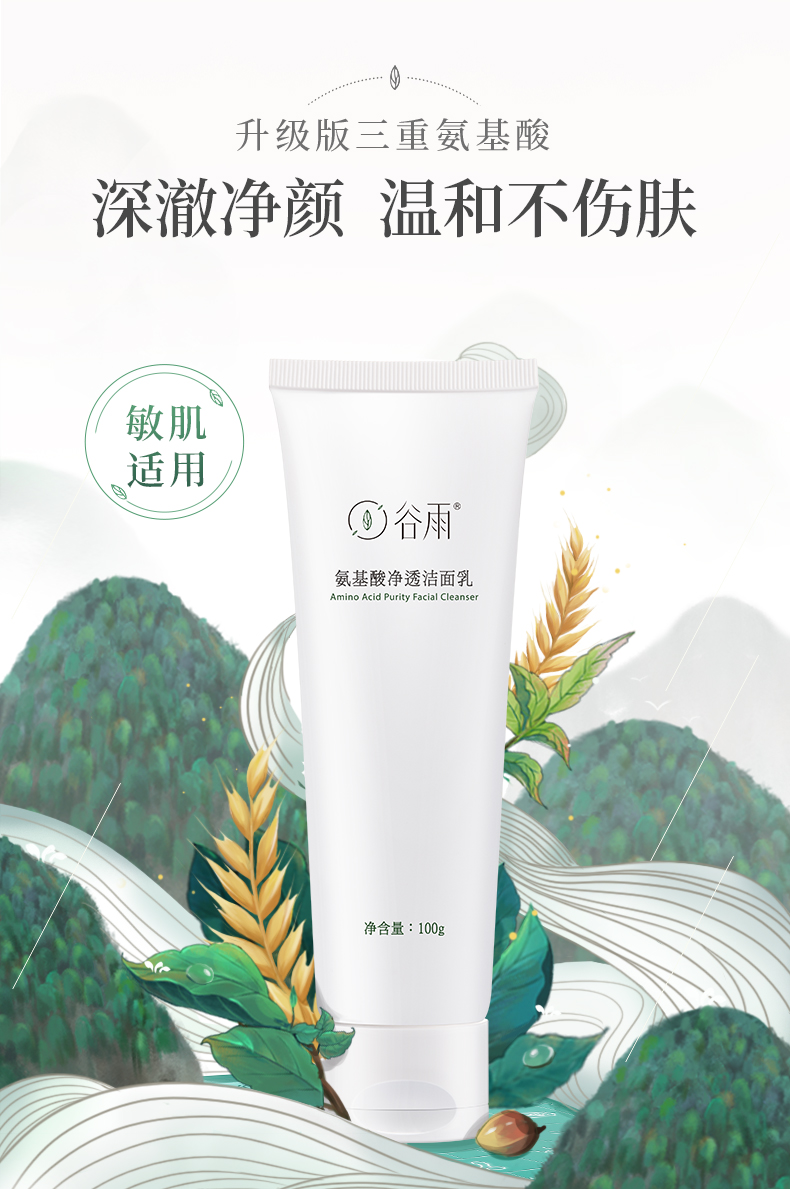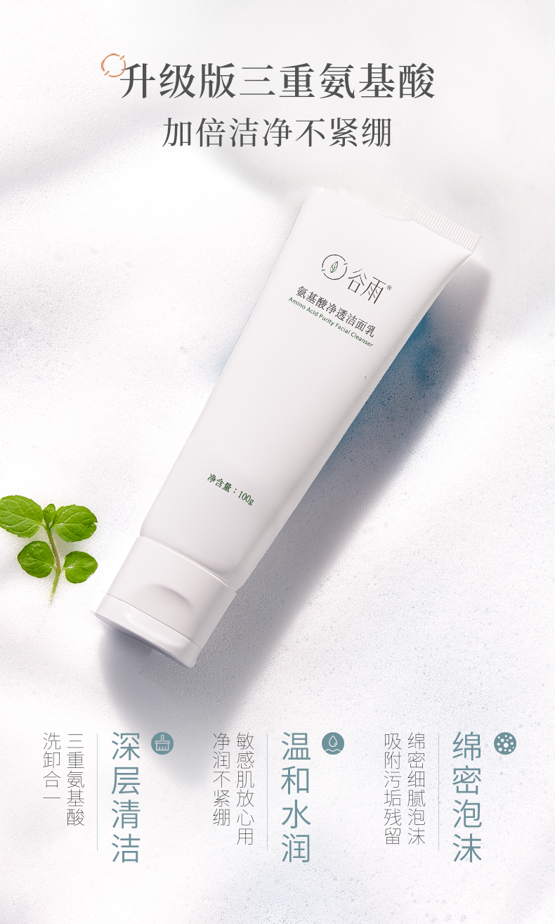 谷雨 氨基酸刷头洗面奶补水保湿控油深层清洁毛孔温和舒缓洁面泡沫