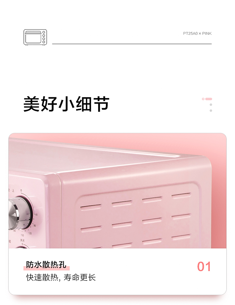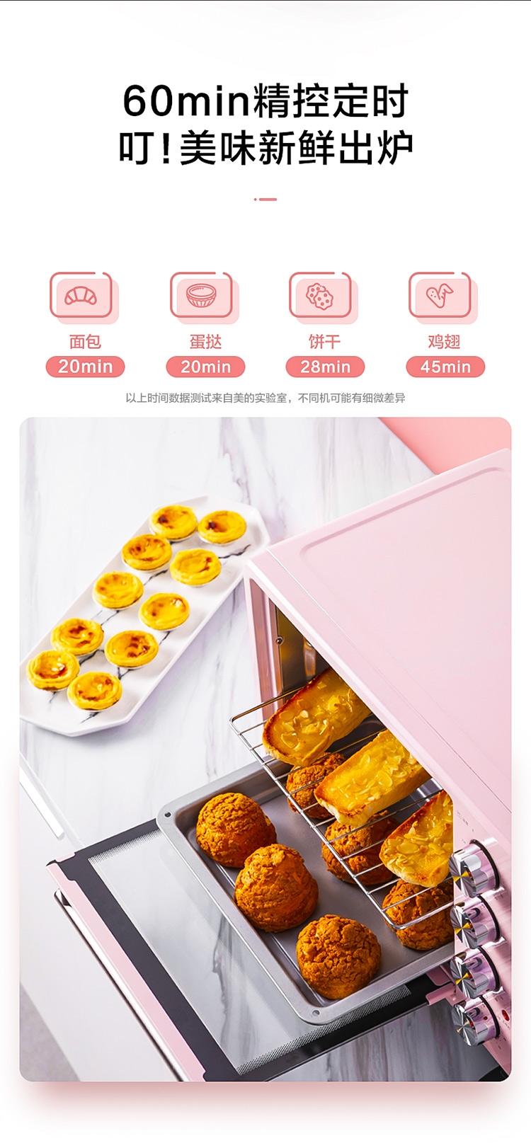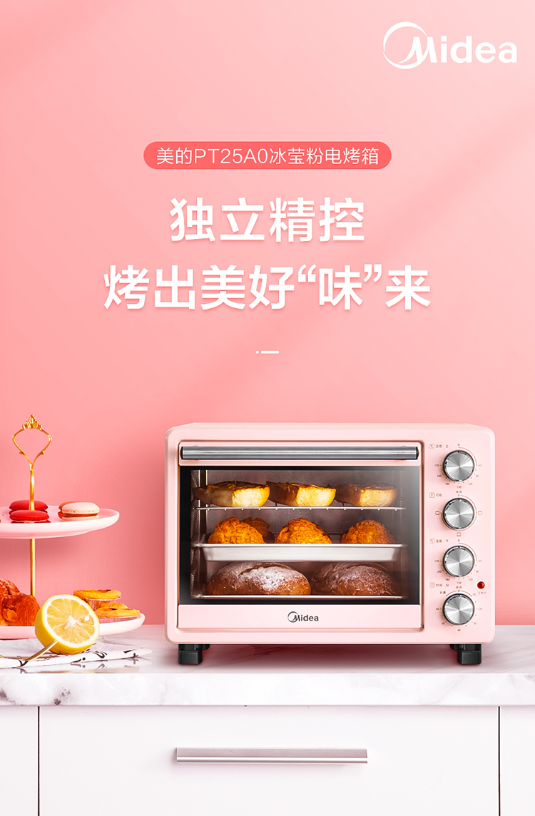 美的(Midea)PT25A0 家用多功能电烤箱 25升 机械式操控