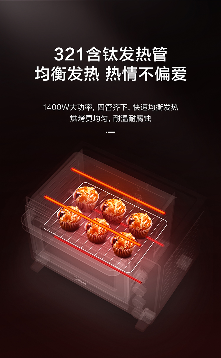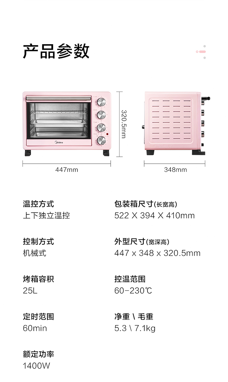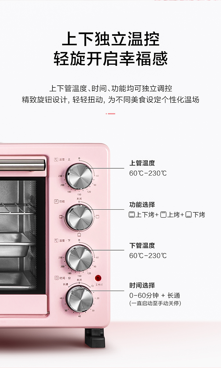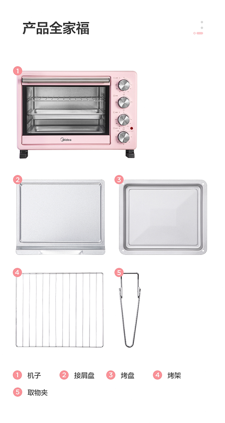 美的(Midea)PT25A0 家用多功能电烤箱 25升 机械式操控
