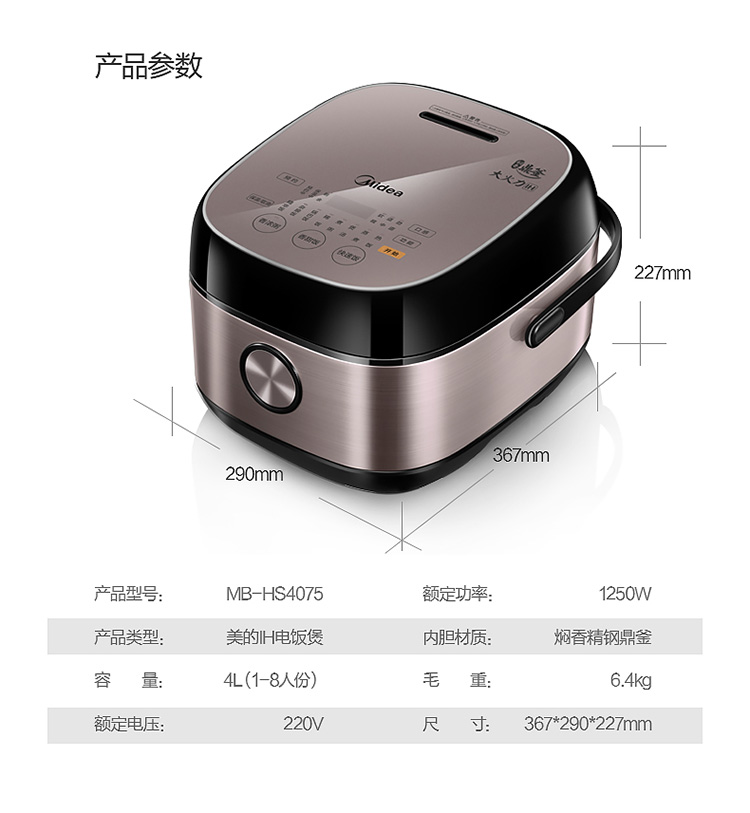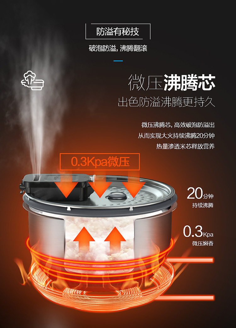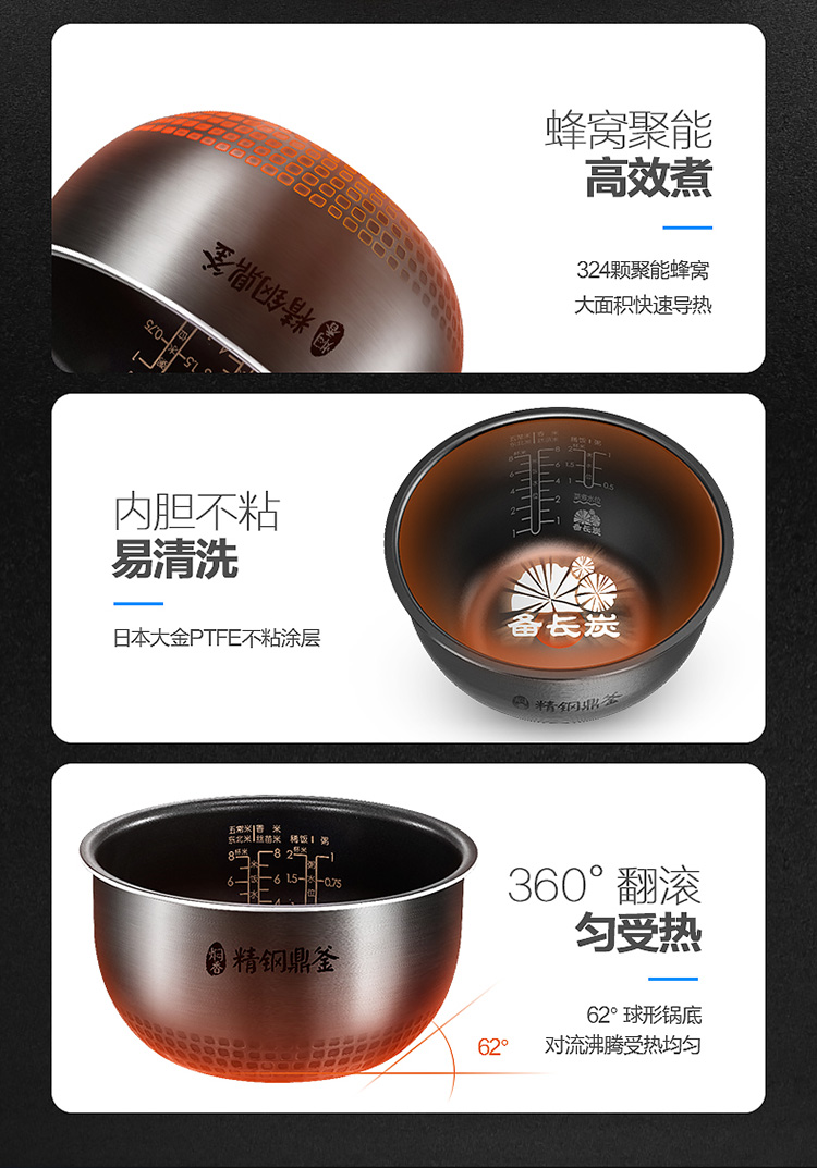 苏泊尔(SUPOR)ZMD安心系列 家用4L升多功能球釜内胆预约柴火饭智能电饭煲SF40HC66