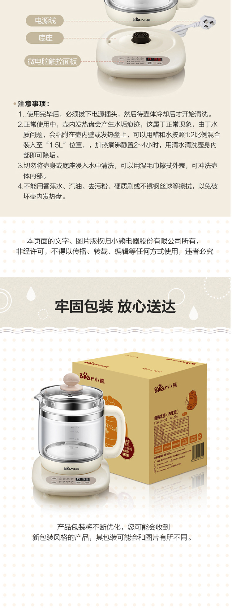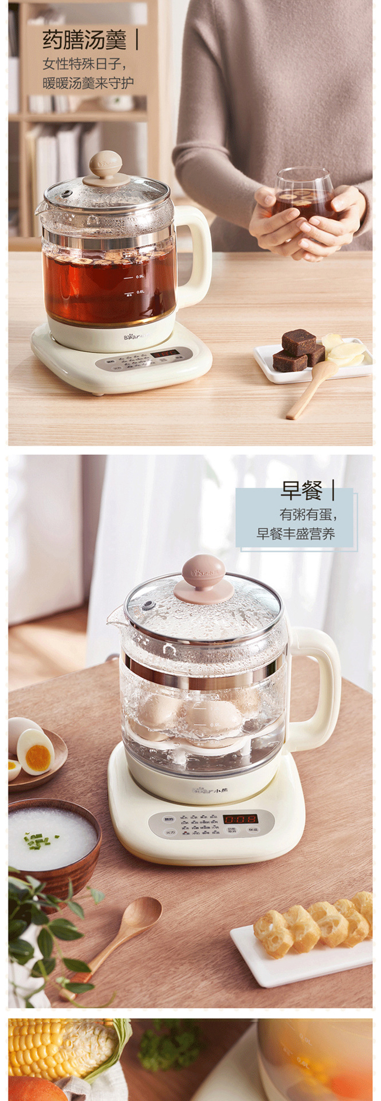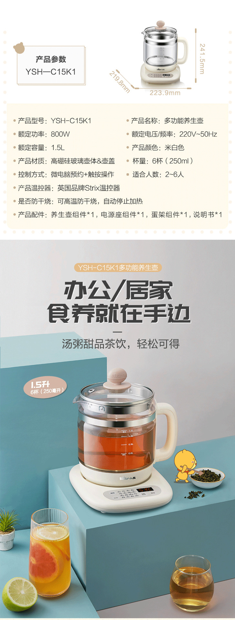 小熊(Bear) 养生壶煮茶器电水壶烧水壶1.5L触屏玻璃花茶壶带茶漏蛋架暖奶器 YSH-A15Z8