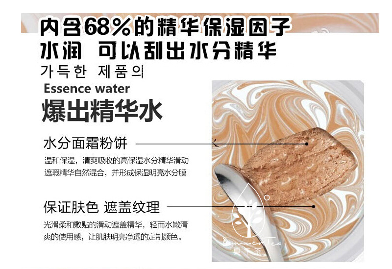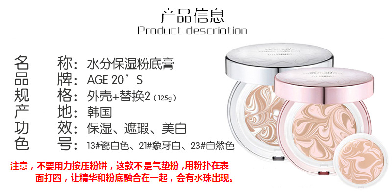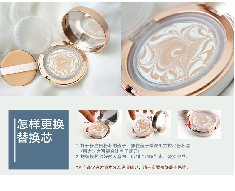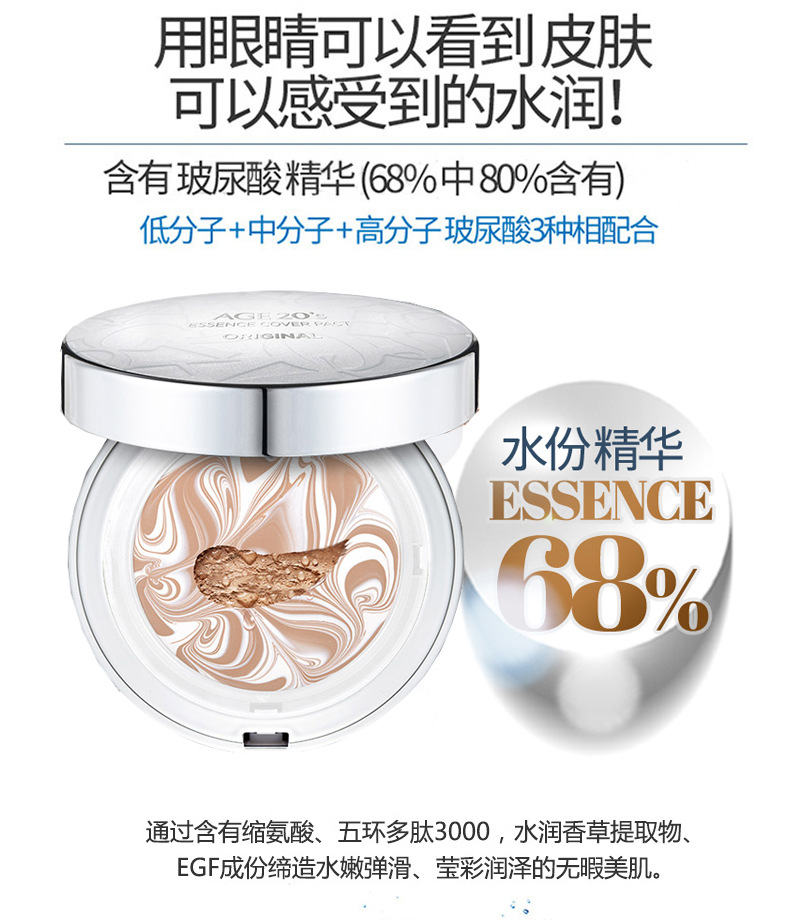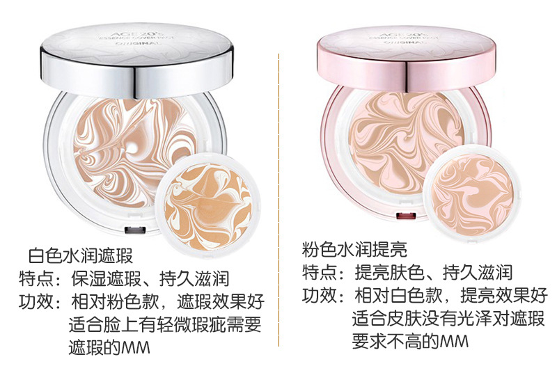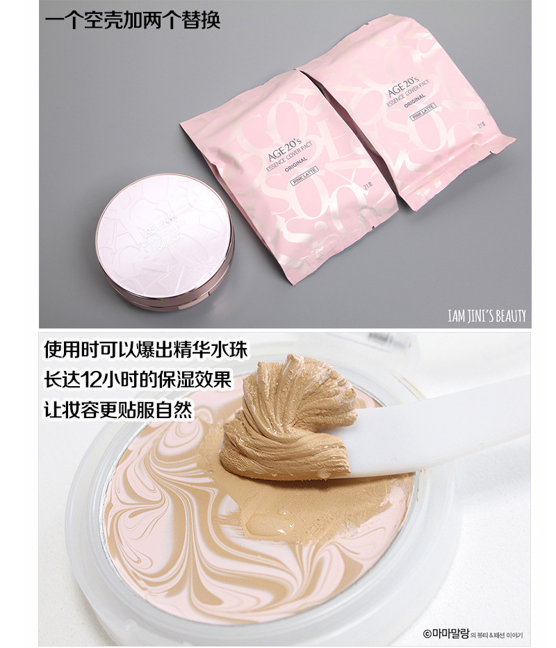 新款的爱敬气垫在保湿和滋润上有提升,高光+隔离+粉底三合一的拿铁拉花膏 轻轻揉搓就会产生小水珠,这些小水珠就是从膏体部分溢出来的玻尿酸精华。 轻薄的延展性和卓越的紧贴力,上妆hin服帖,毛孔瞬间隐形,皮肤白嫩透亮不厚重。 含有的油脂吸附成分,肌肤水润不油腻!