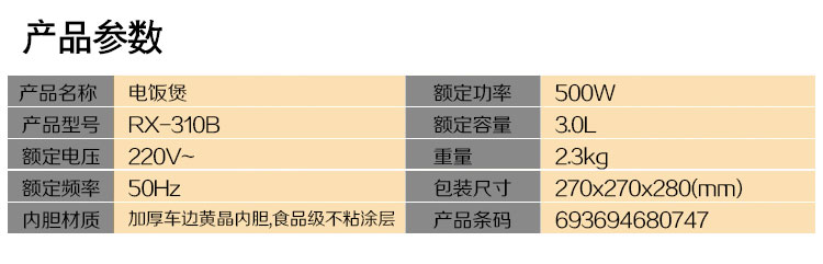 西屋Westinghouse电饭煲WRC-0212A 2L