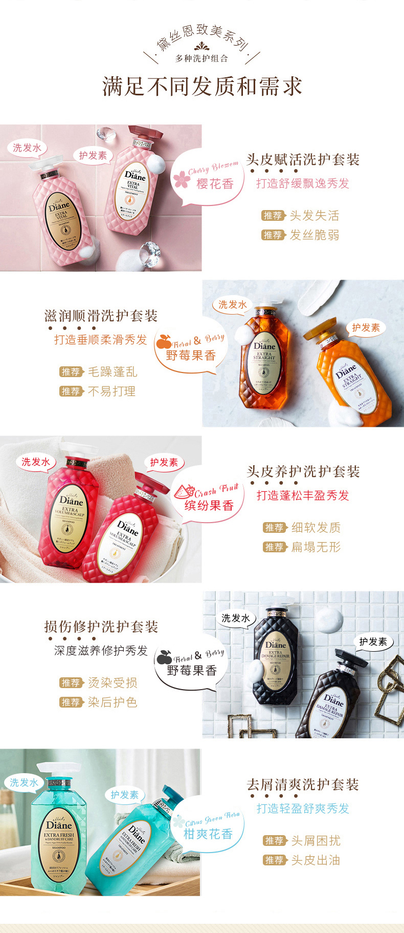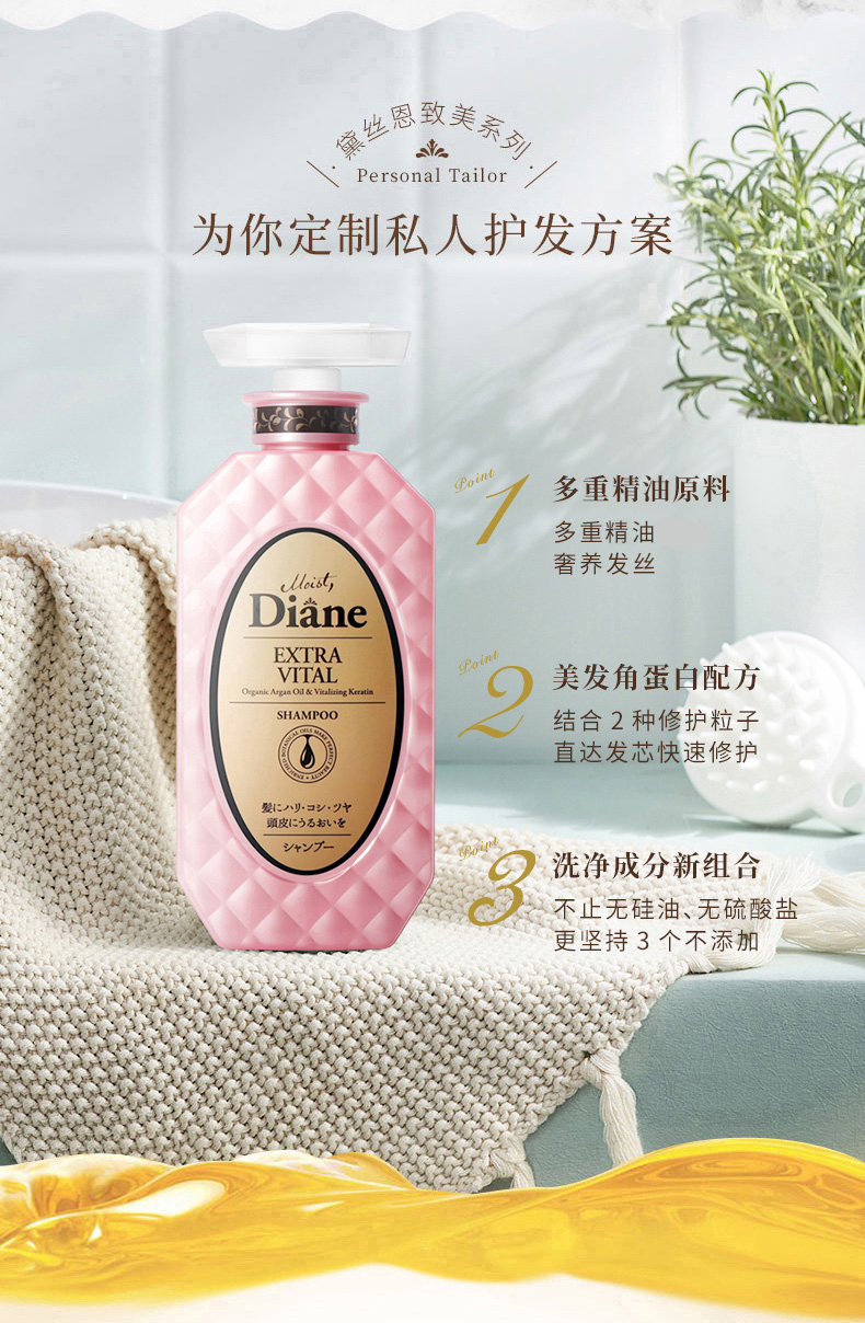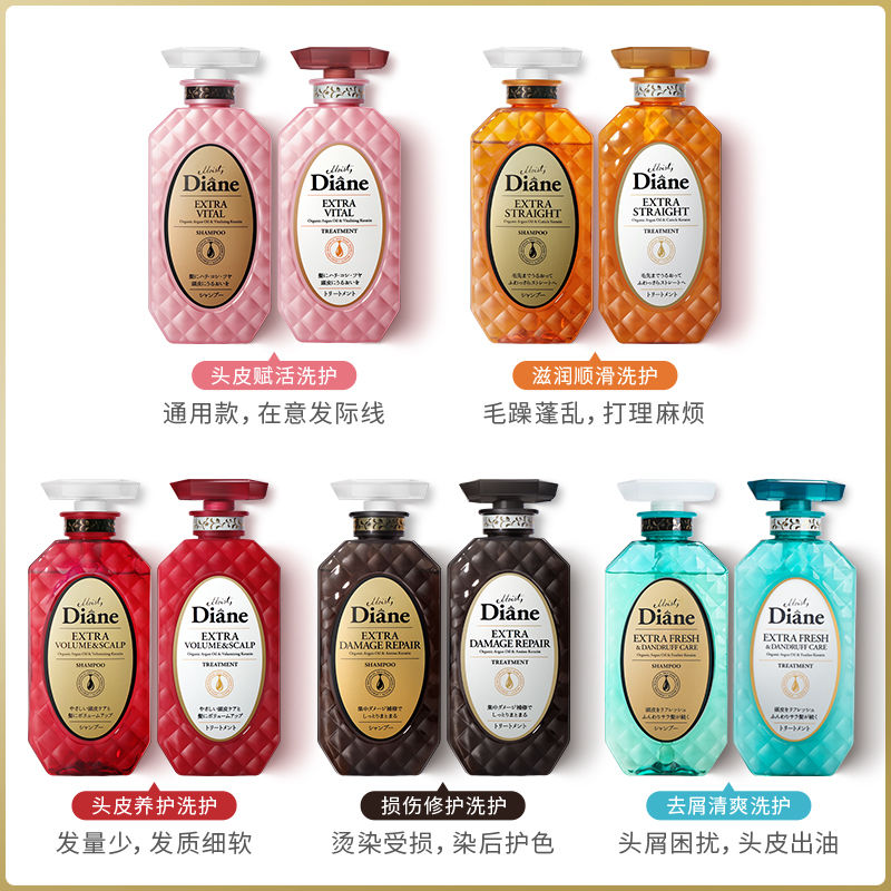 日本黛丝恩Moist Diane致美摩洛哥油控油蓬松滋润去屑洗发水护发素450ml 多重精油原料 美发角蛋白配方