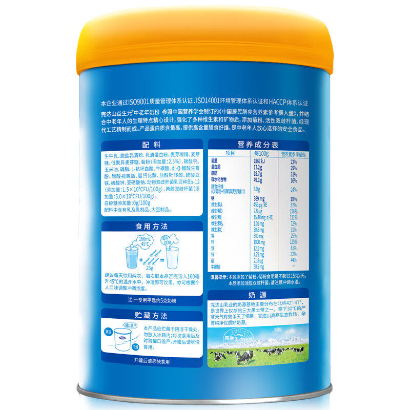 素儿美滋中老年无蔗糖富硒奶粉高补钙铁锌十联益生菌羊奶粉800g