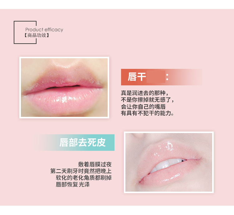 光是果冻感高明度的质感就让少女们无法抗拒。丰润的水果味道,让每一个亲吻都有甜蜜的感觉。薄薄地涂一层,饱满的双唇让自己都想咬一口。厚厚涂一层,第二天搓搓搓就能看到死皮脱落,真心过瘾