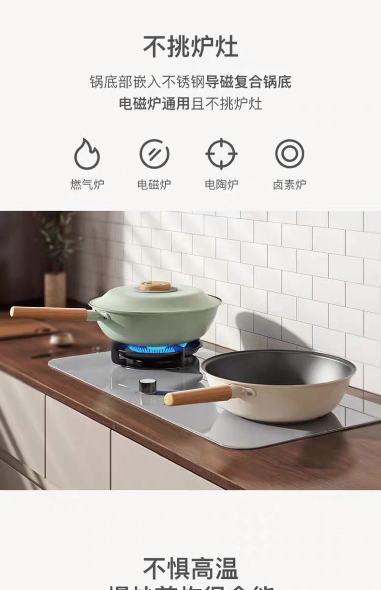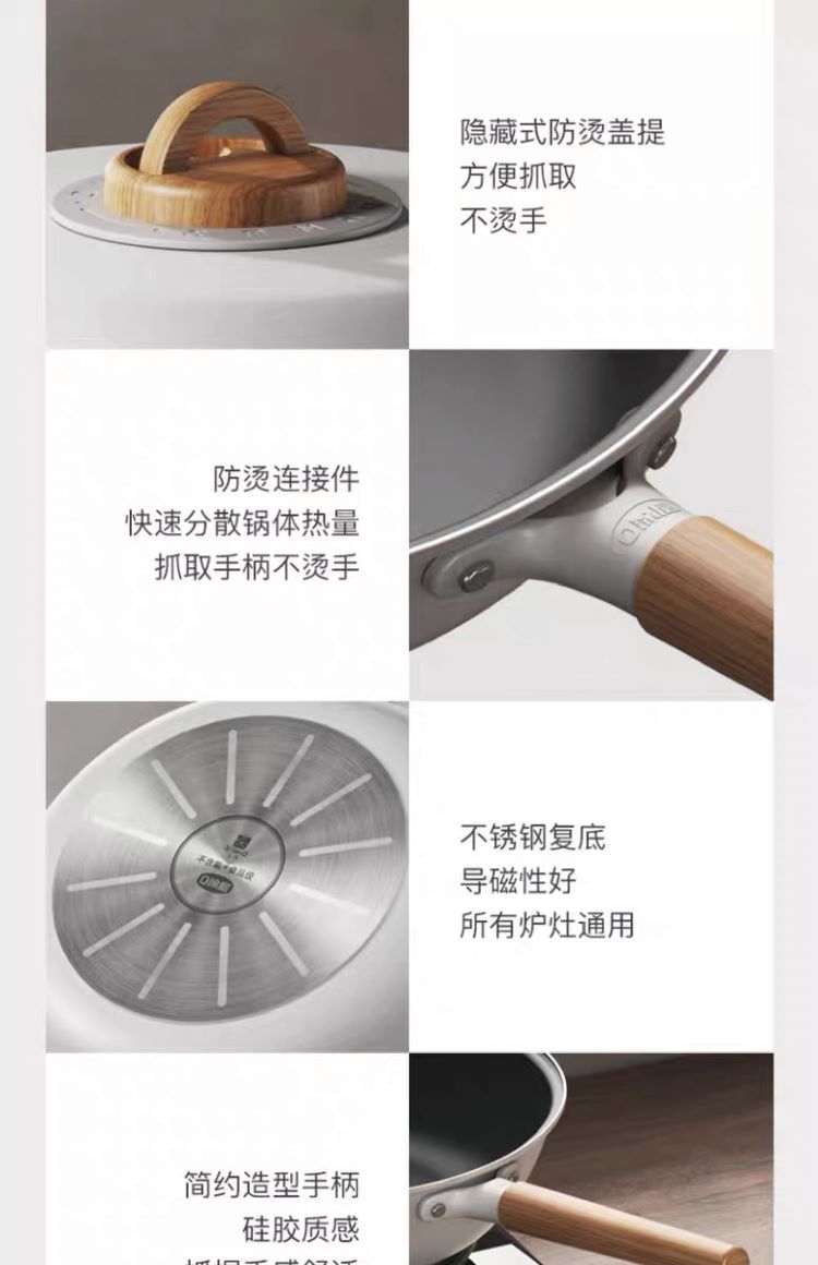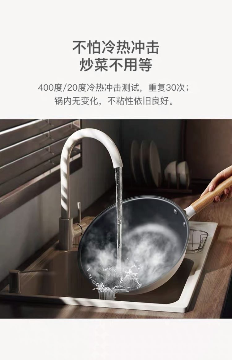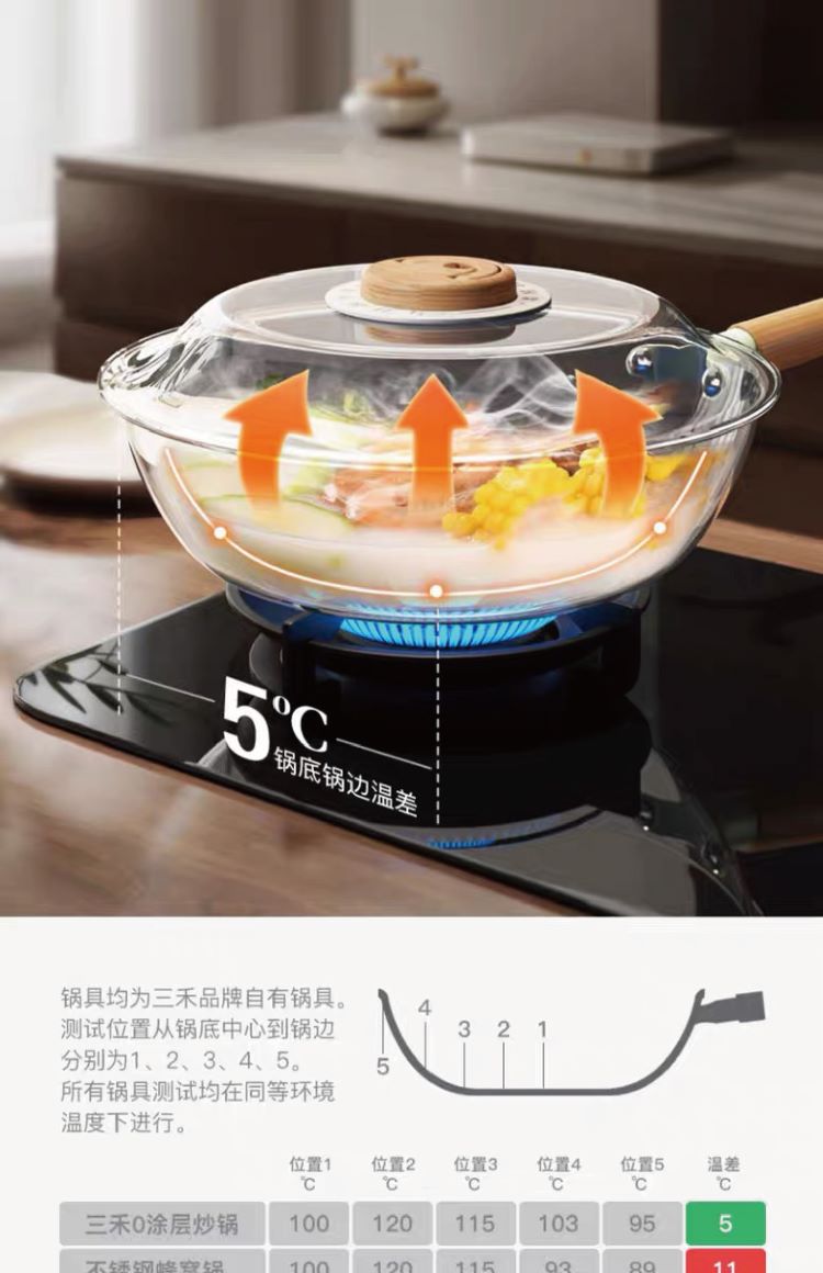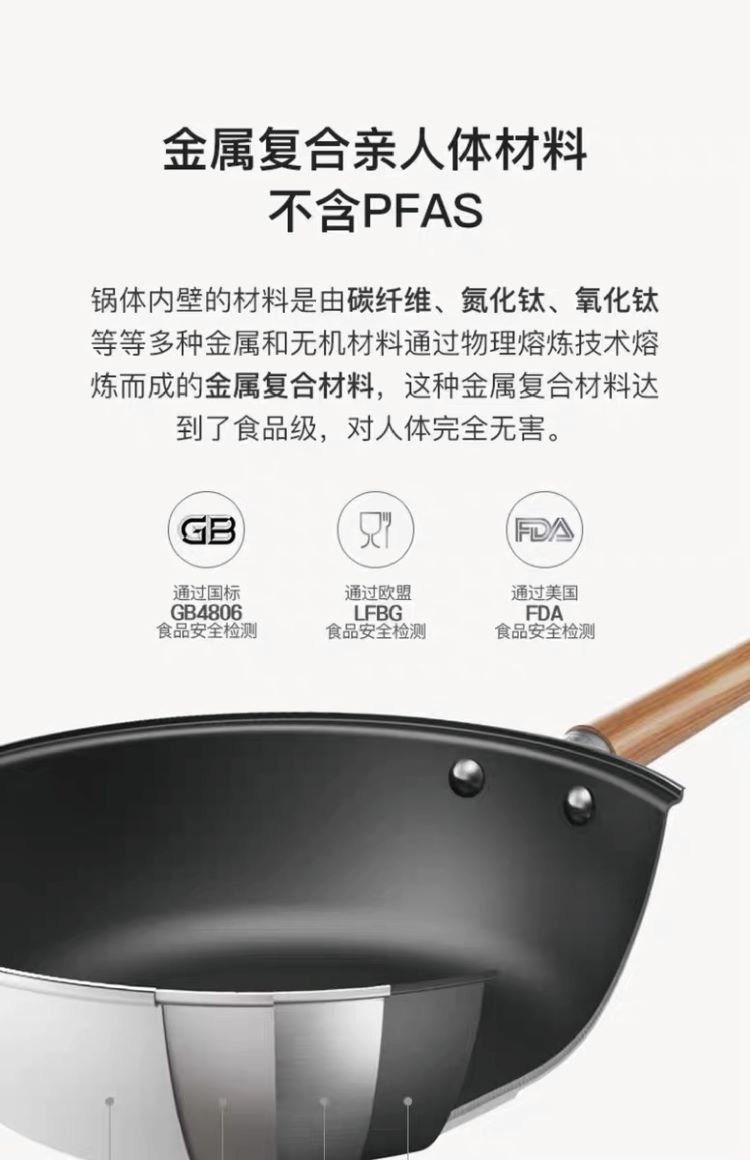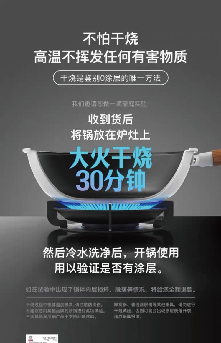 「三禾0涂层」不粘炒锅和传统不粘锅相比做到没有化学涂层.无惧钢铲随心爆炒,硬度达涂层锅4-5倍高温不挥发任何有害物质,真正0涂层0氟0分解 0涂层高硬度,持久耐磨 0涂层不怕冷热冲洗,炒菜无需等待 0涂层,不怕干烧、烧不坏 高温不挥发任何有害物质,真正0涂层0氟0分解 轻量化设计,减重30%仅重1.13kg,轻松颠锅 不锈钢复底,电磁炉通用且不挑炉灶 在烹饪时,食用油能够浸润仿生微纳结构表面,无需化学涂层即可将食材与锅表面隔绝开来,从而实现“0涂层不粘”效果,并兼具出色的耐磨性和防锈能力