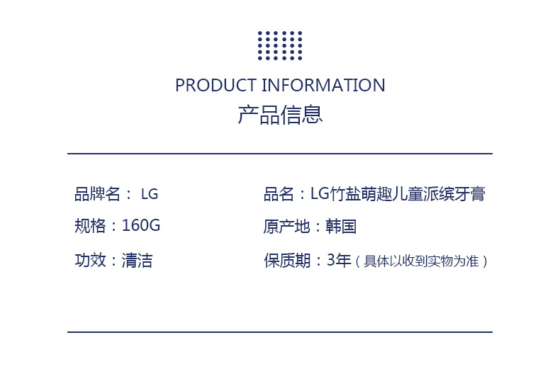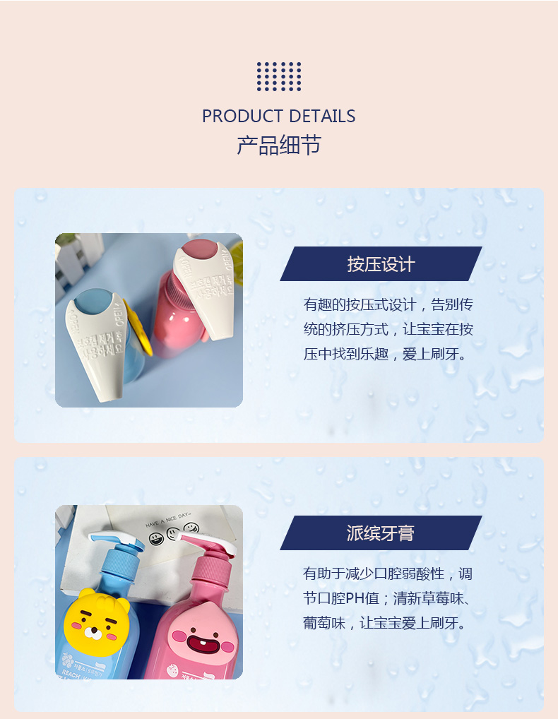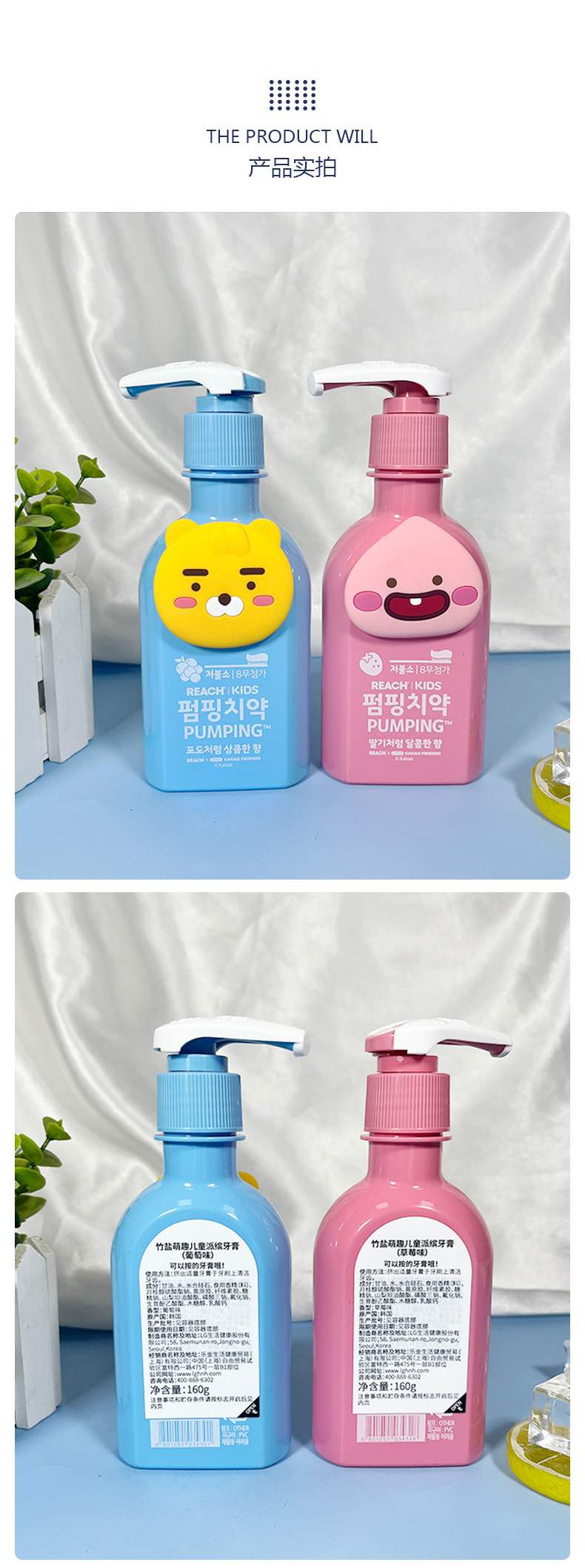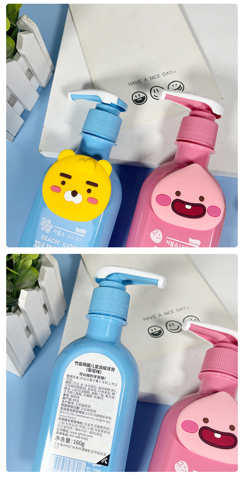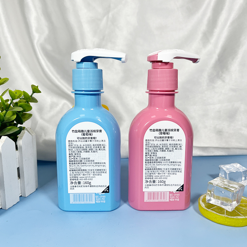 韩国进口LG儿童竹盐牙膏倍瑞傲派滨按压式牙膏可吞咽无氟牙膏160g