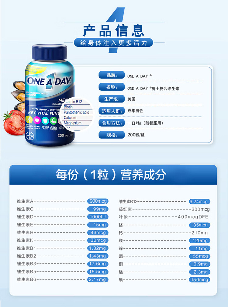 澳大利亚medisum 埃迪生 小蓝丸 亚健康保健品男性活力 男士小粒复合维生素 60粒