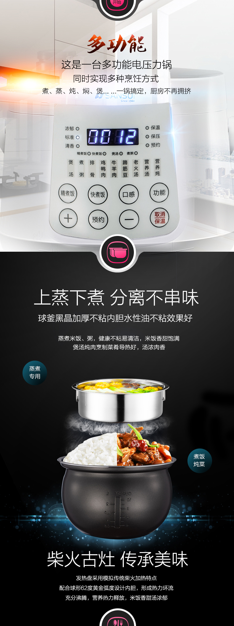 苏泊尔(SUPOR)智能球釜电压力锅5L SY-50FC03Q
