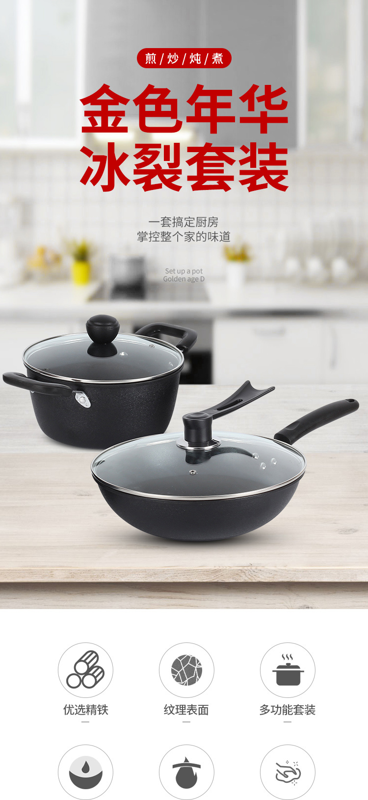 艾姆德 EMUND金色年华冰裂套装 DG-BL3024 30CM炒锅+24CM汤锅