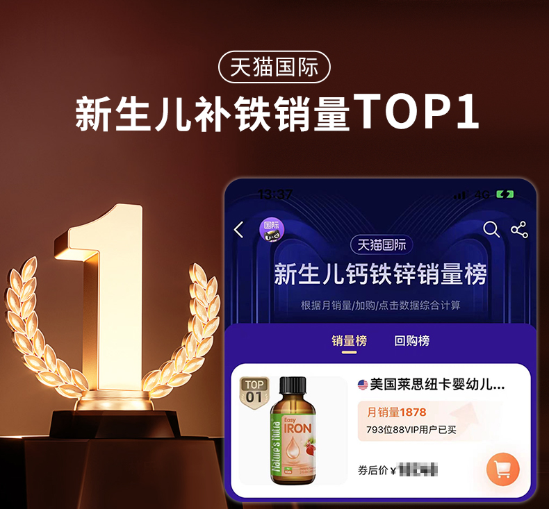 完税进口 保税直供 【品牌直供】美国莱思纽卡 补铁滴剂 60ml补铁滴剂