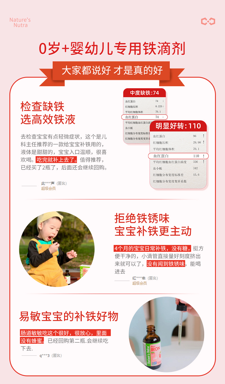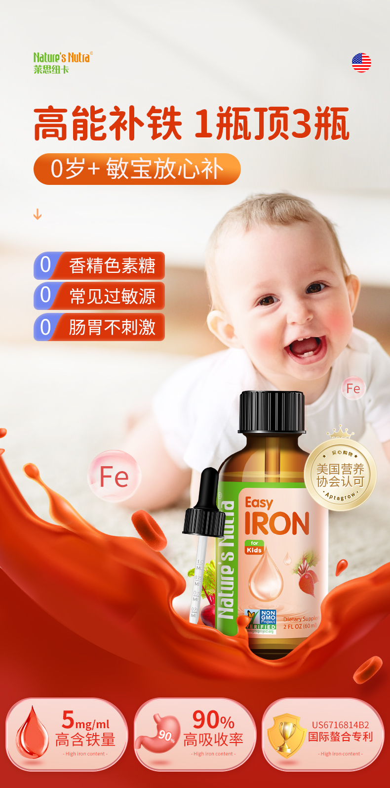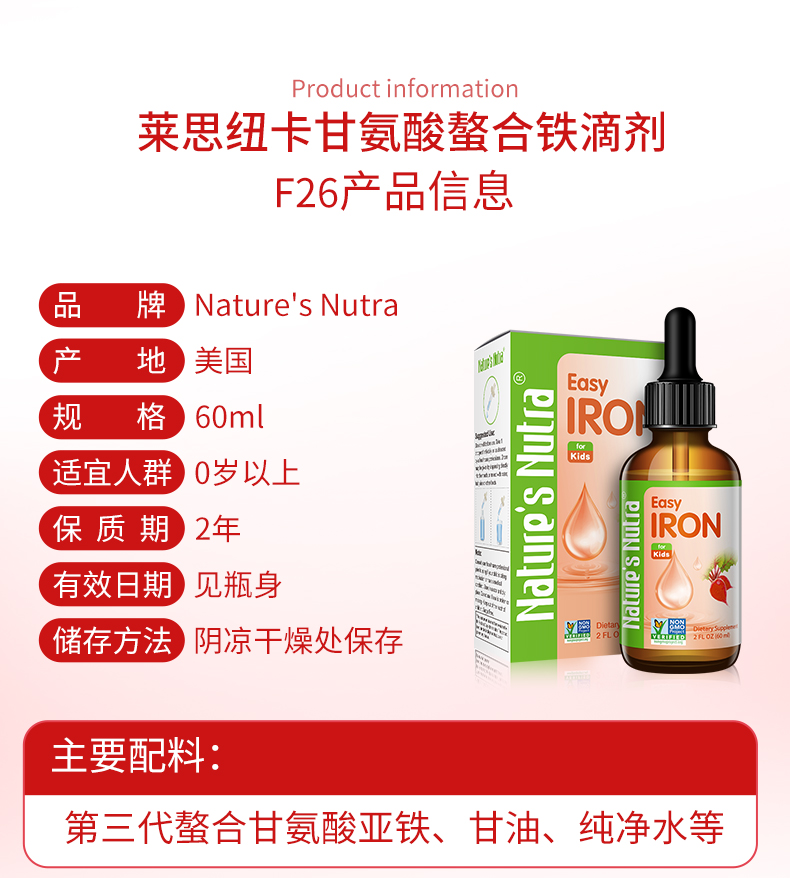 【品牌直供】美国莱思纽卡 补铁滴剂 60ml补铁滴剂