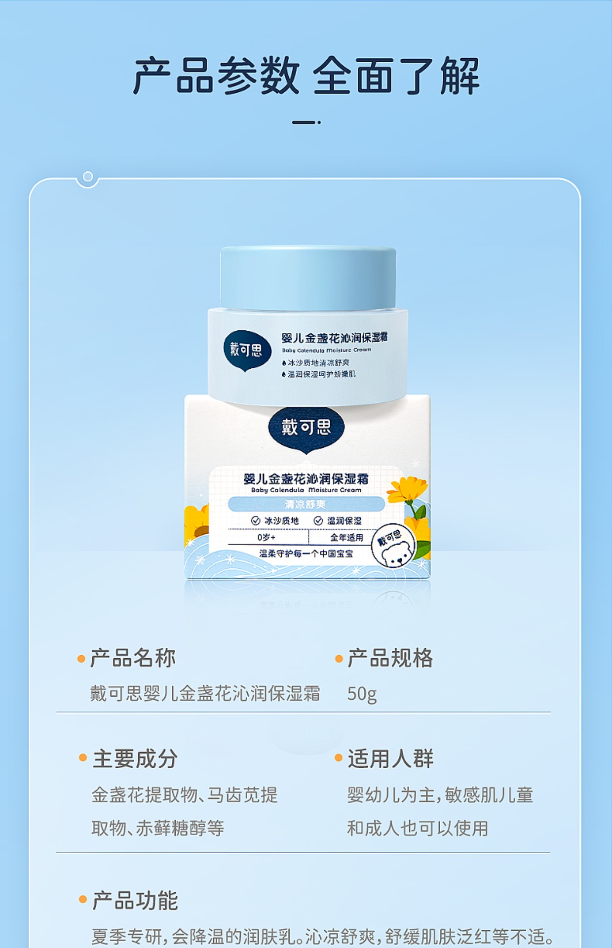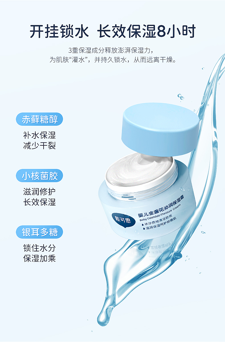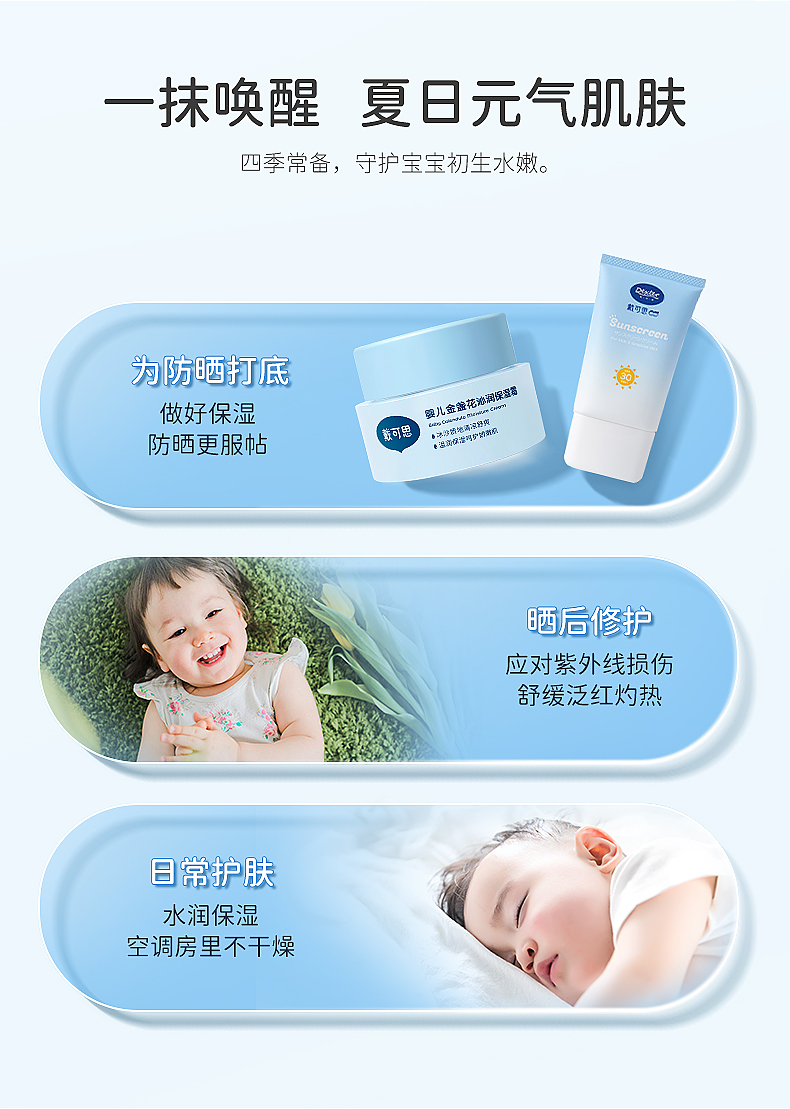 戴可思婴儿面霜沙冰金盏花夏季宝宝面霜儿童保湿霜补水滋润无激素,夏天晒后修复,舒缓肌肤,抹上冰冰凉凉好舒服