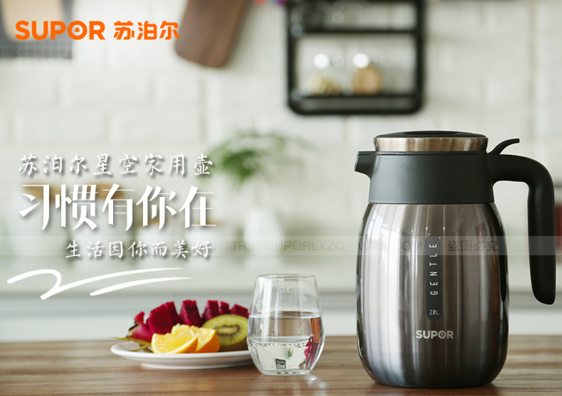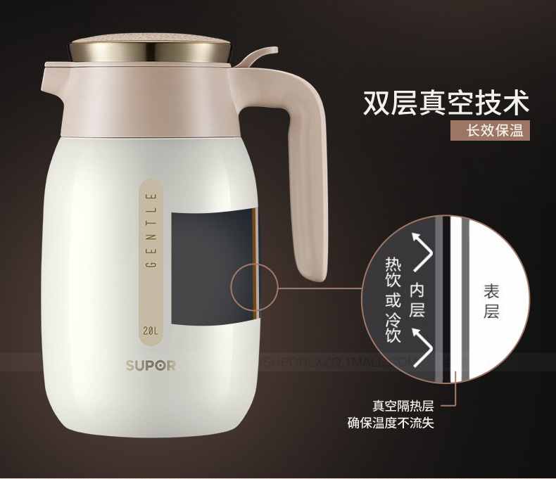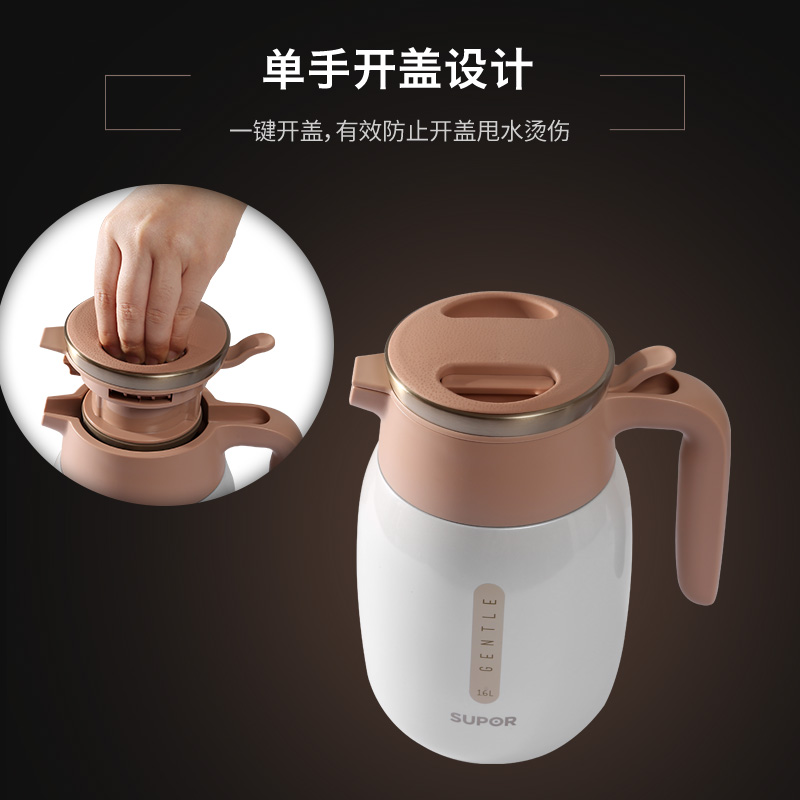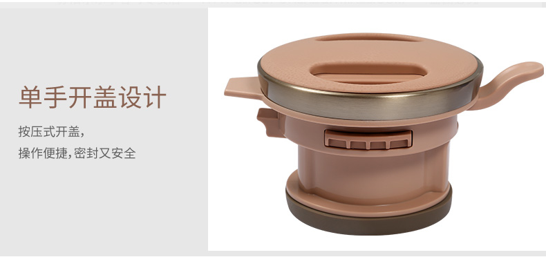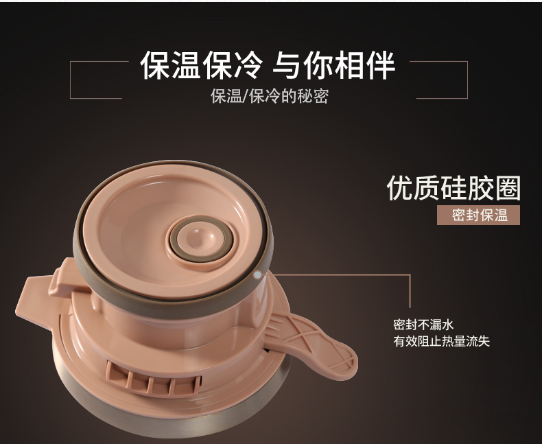 304不锈钢内胆双层真空技术 一键开盖有效防止开盖甩水烫伤 PP材料特别设计壶盖 优质硅胶防漏边缘设计密封不漏水 防滑壶底增强耐磨性 人性化防滑手柄