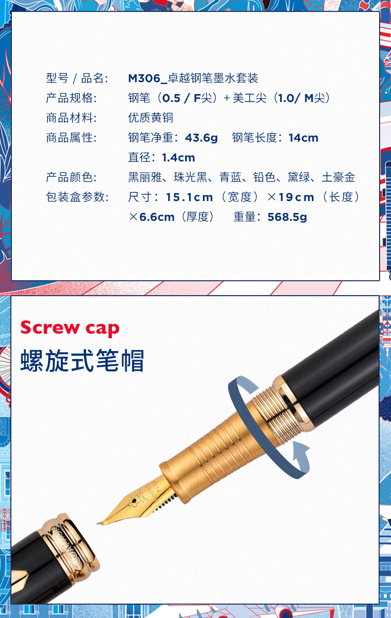 梦特娇钢笔M701超越福字笔办公礼品笔送礼学习文具用品礼物