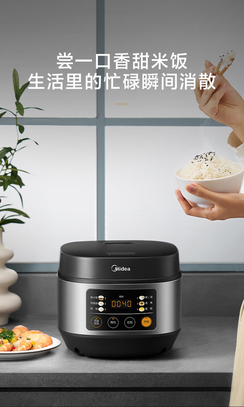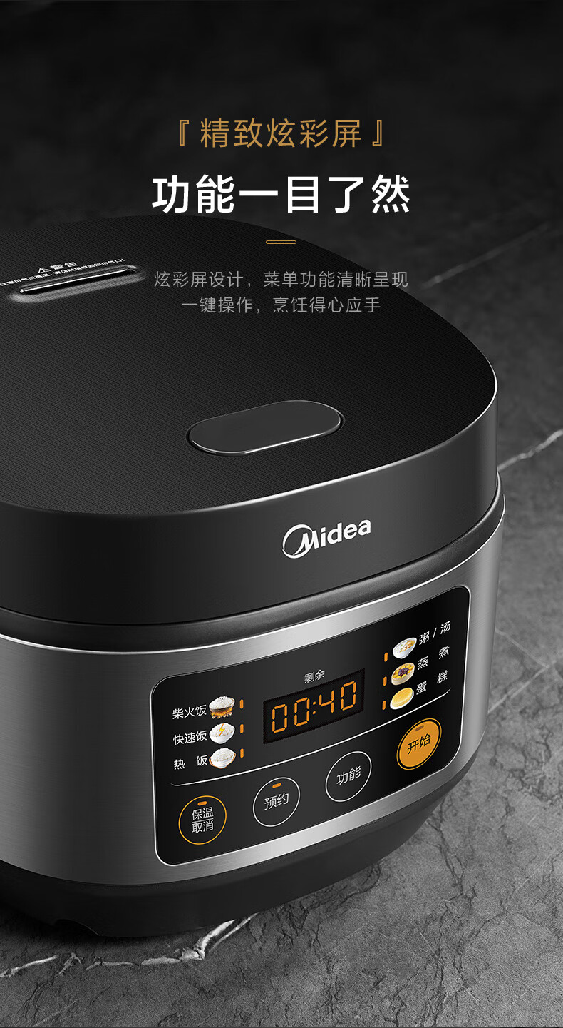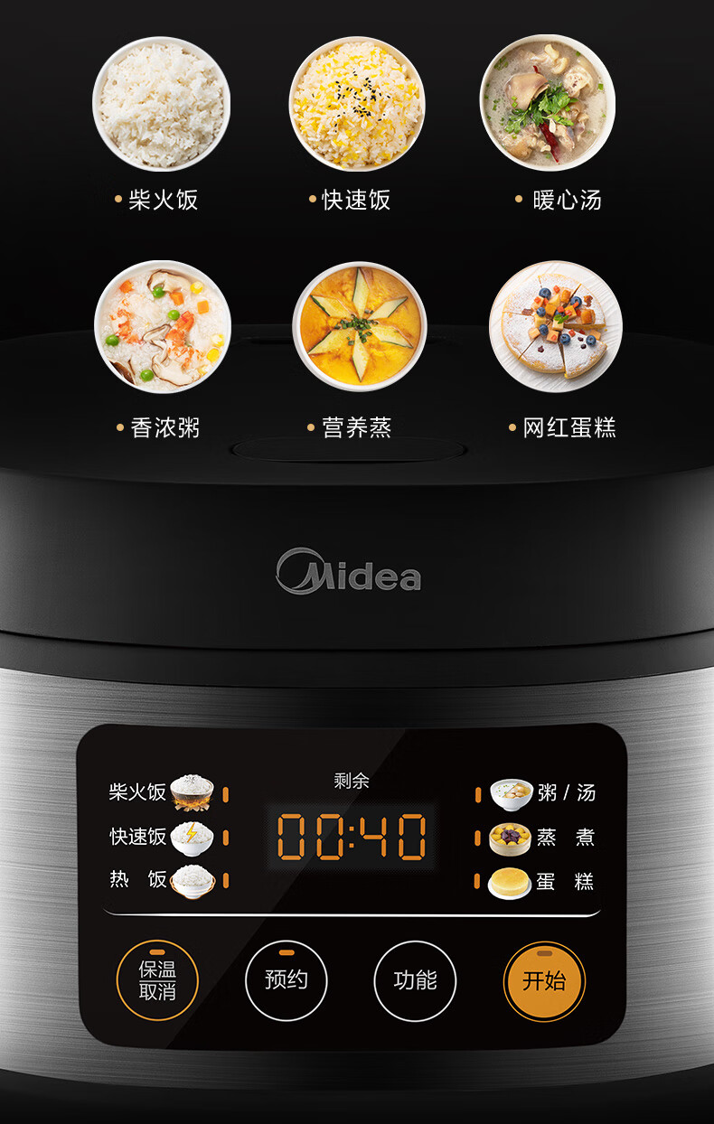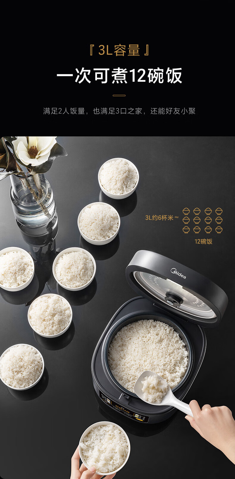美的(Midea)电饭煲电饭锅小型3升2-6人前置大屏面板24小时预约多功能家用智能电饭煲FB30Q1-406K(2-6人)