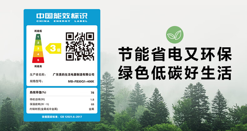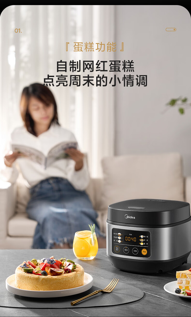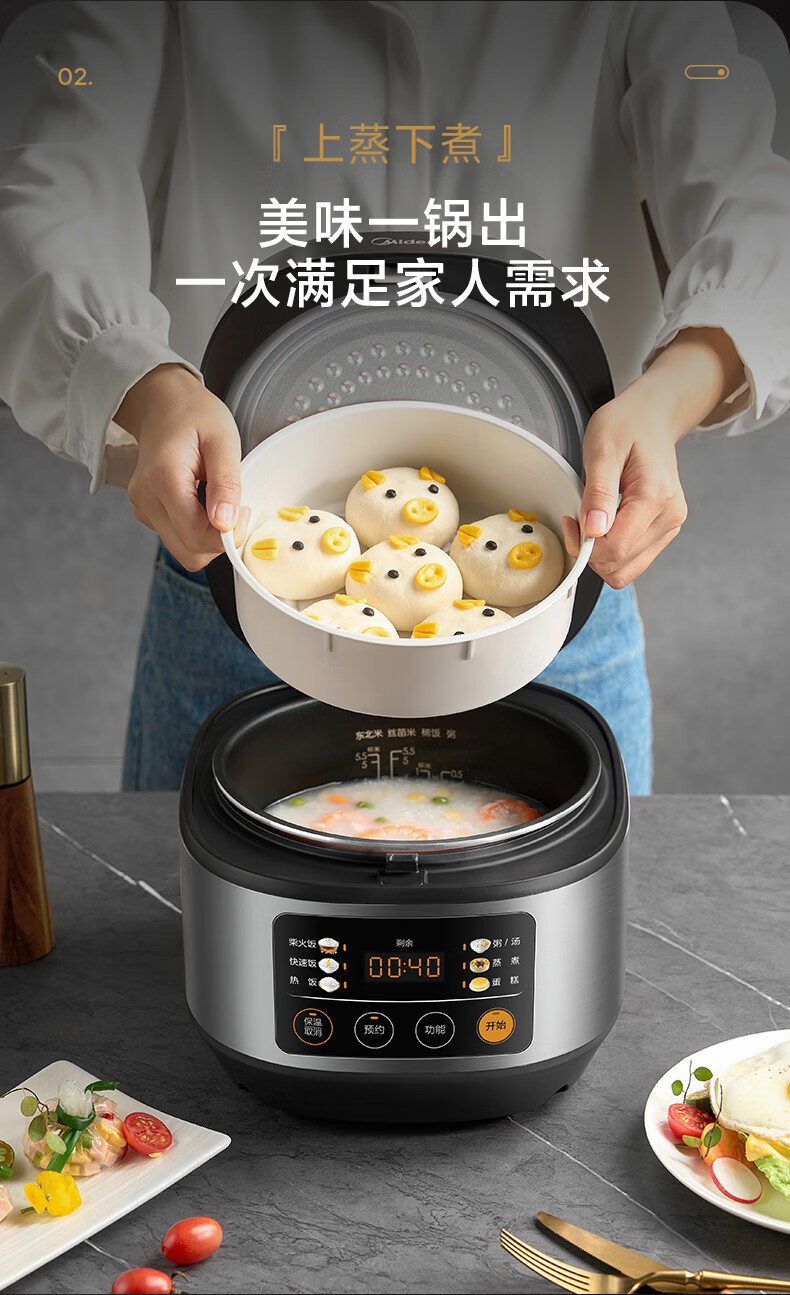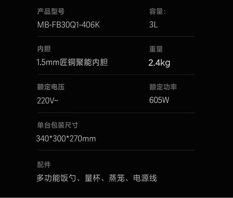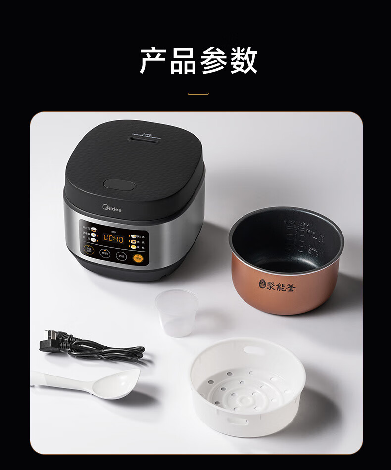 美的(Midea)电饭煲电饭锅小型3升2-6人前置大屏面板24小时预约多功能家用智能电饭煲FB30Q1-406K(2-6人)