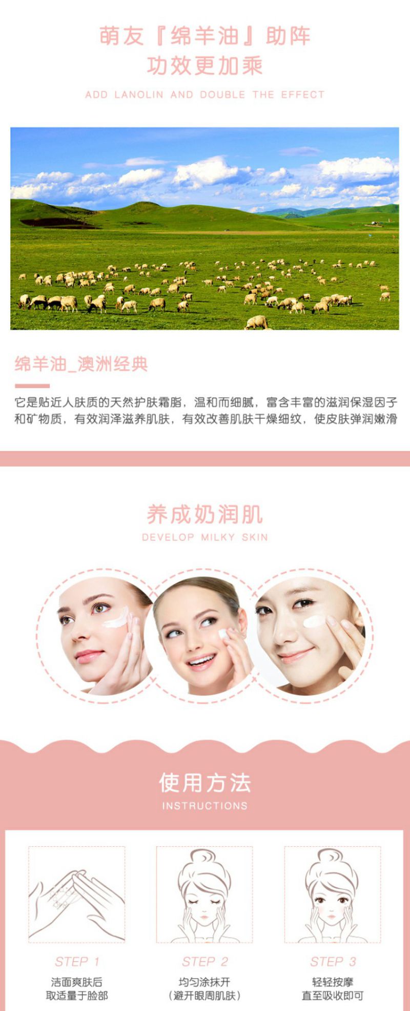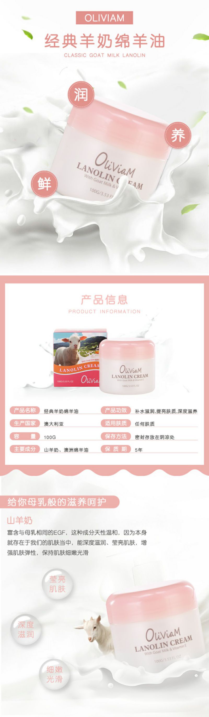 澳芝曼绵羊脂滋润维E霜 温和新配方 250g