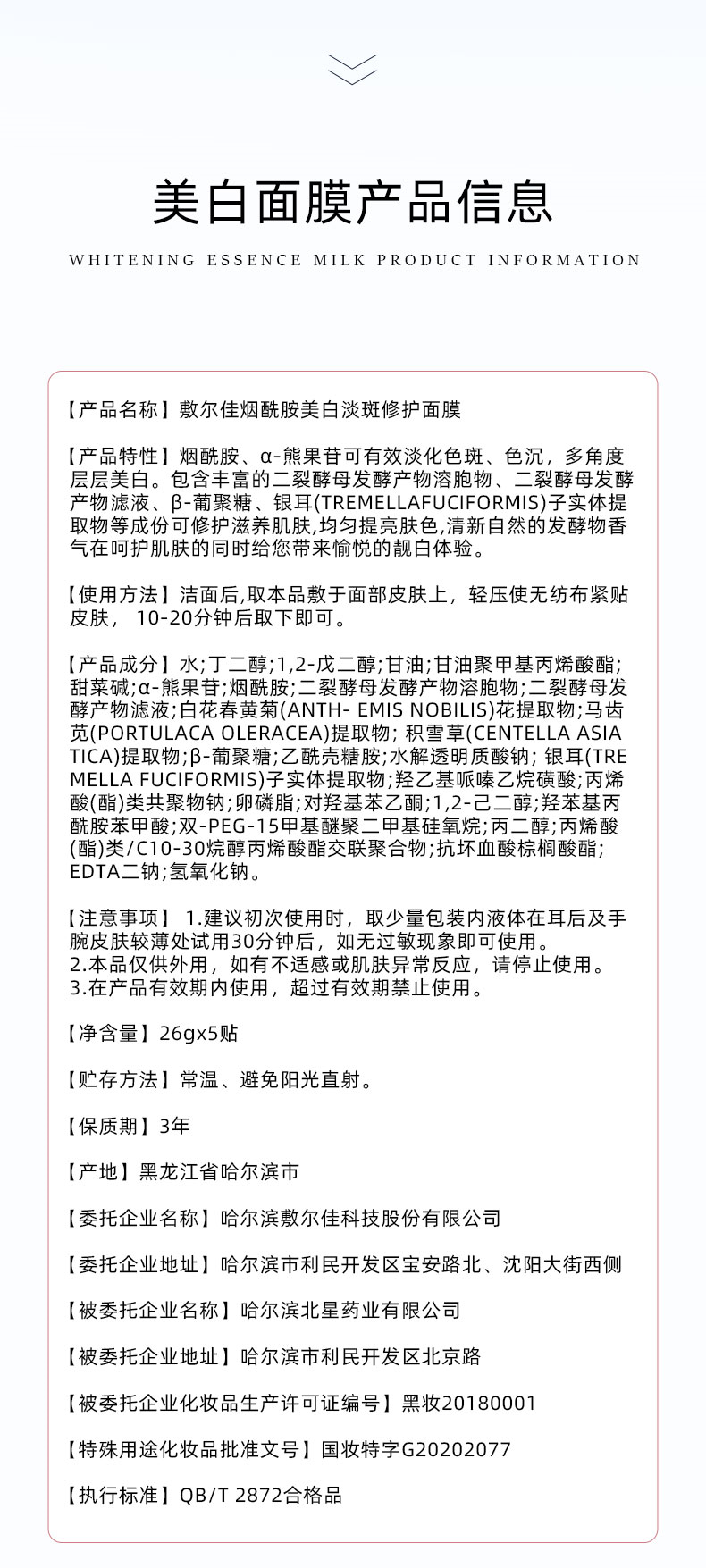 敷尔佳双肽舒缓修护面膜5片 舒缓肌肤泛红补水保湿修护肌肤屏障敏感肌