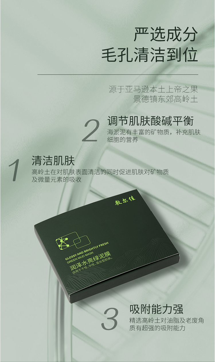 敷尔佳泥膜选用的海淤泥、高岭土、盐矿泥浆。三种吸附性成分的加持,使得敷尔佳泥膜清洁皮肤的能力大大提升。