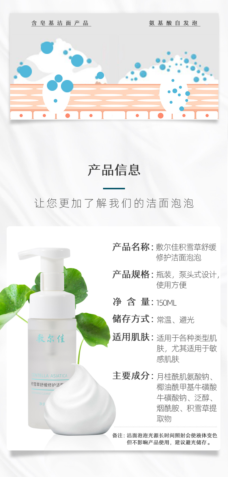 敷尔佳氨基酸洗面奶,温和清洁,无惧敏感,4种积雪草提取物,修护肌肤屏障,敏感肌肤推荐使用