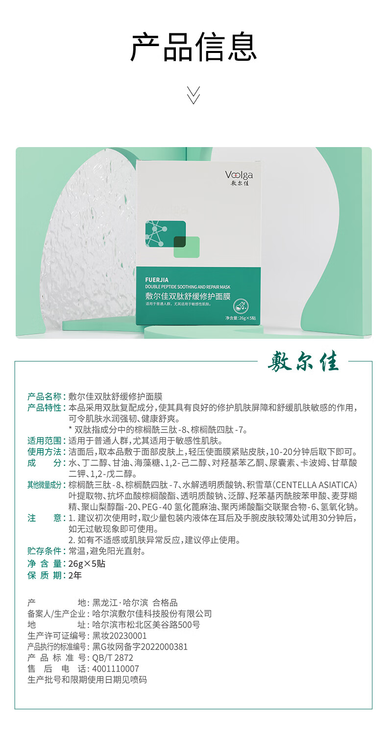 敷尔佳蓝铜肽安肤贴片面膜(5贴/盒)