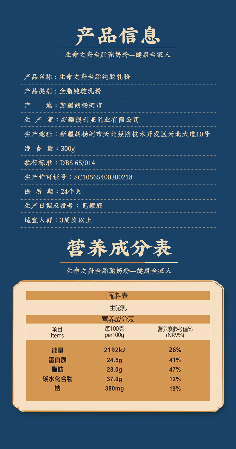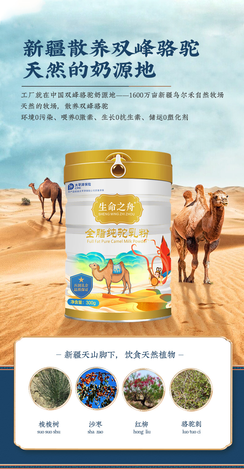 亩育万物有机全脂驼乳粉中老年成人无蔗糖儿童青少年新疆纯骆驼奶粉300g/罐