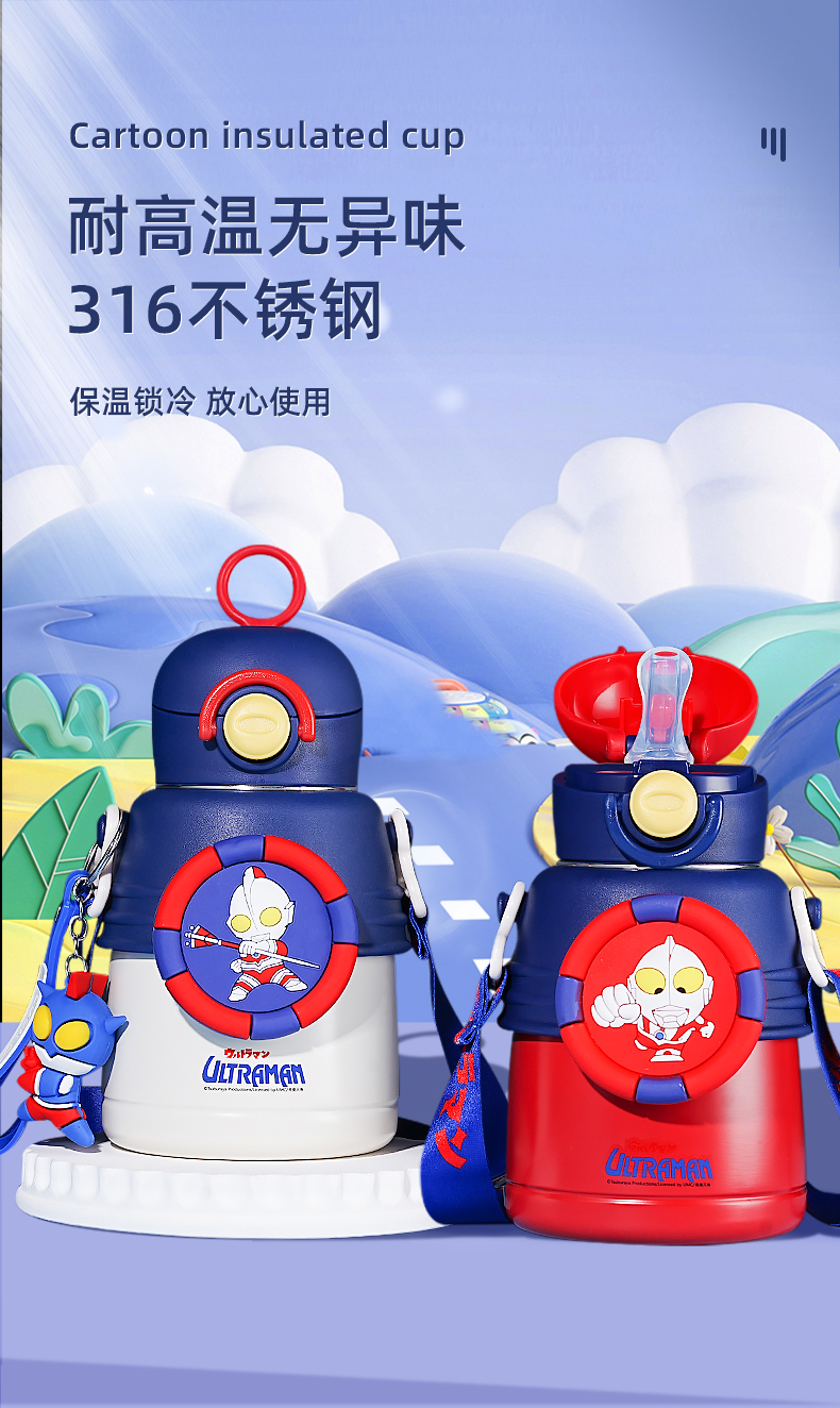 babycare恐龙冷萃杯儿童背带学饮杯霸王龙托比吸管水杯学生外出旅行大毫升500ml