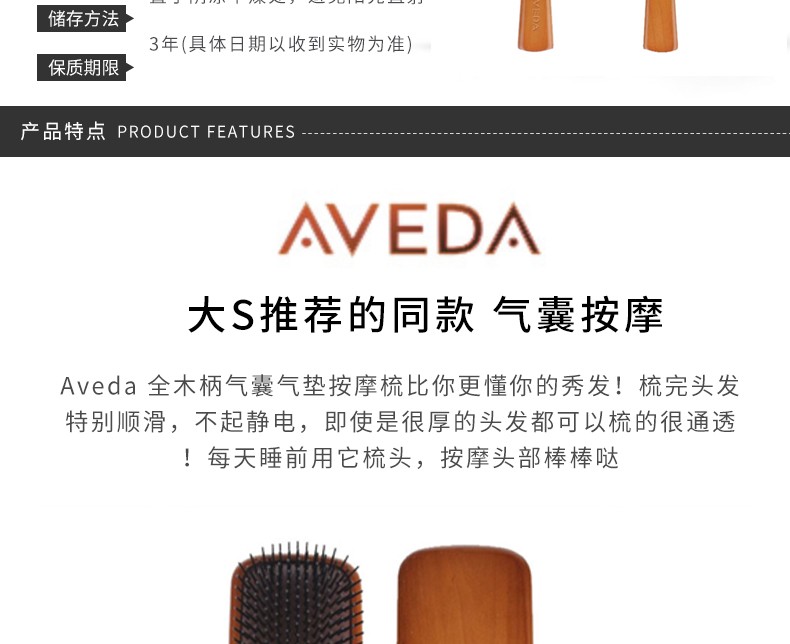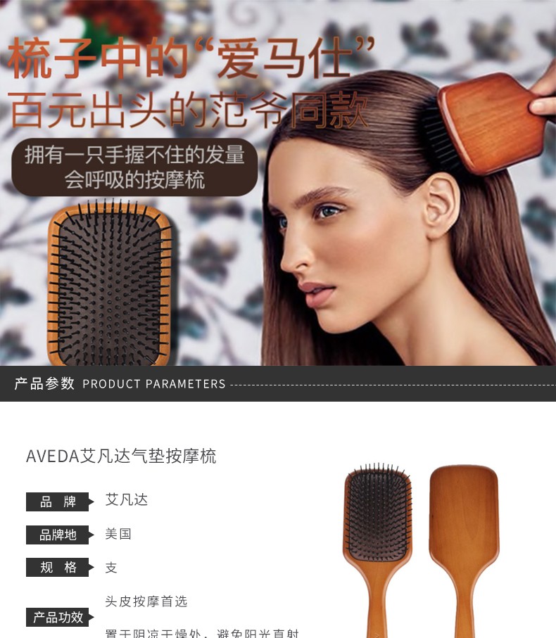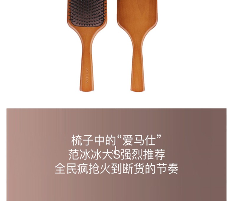 梳子中的“爱马仕”,范冰冰大S强烈推荐,全民抢断货的节奏。Aveda 全木柄气囊气垫按摩梳比你更懂你的秀发!大S推荐的同款!梳完头发特别顺滑,不起静电,即使是很厚的头发都可以梳的很通透!每天睡前用它梳头,按摩头部棒棒哒