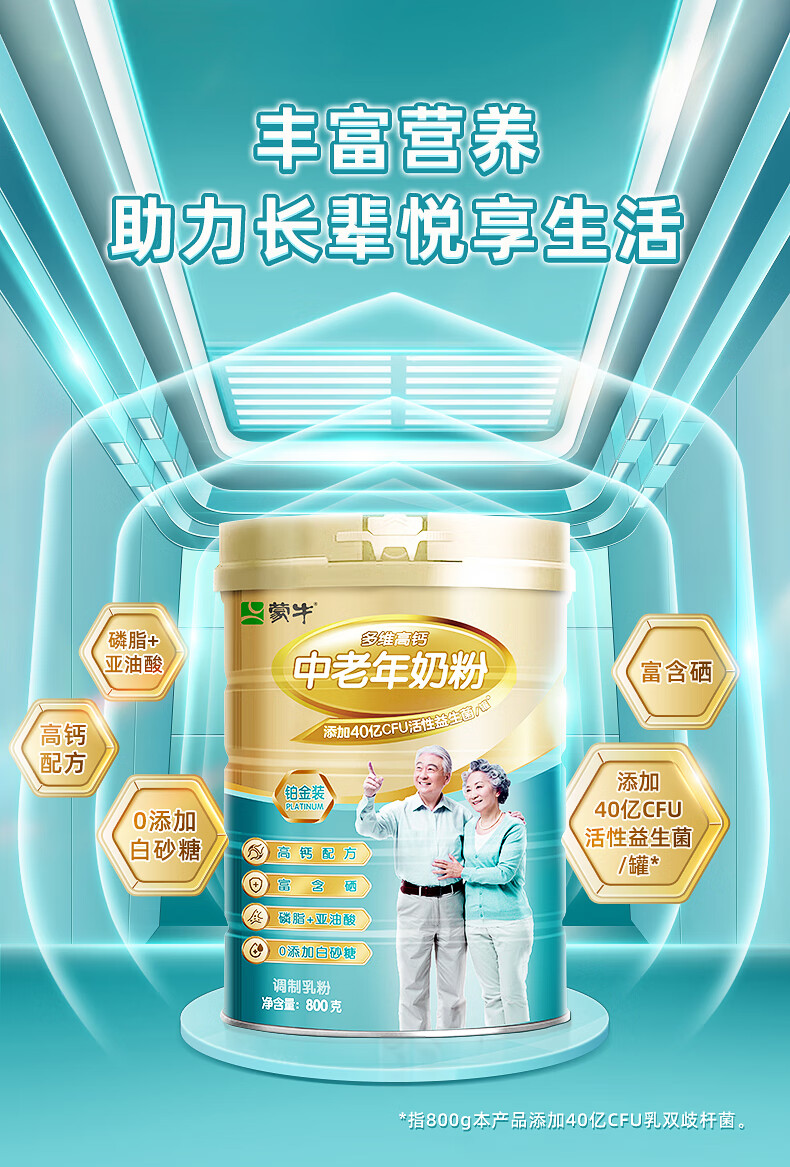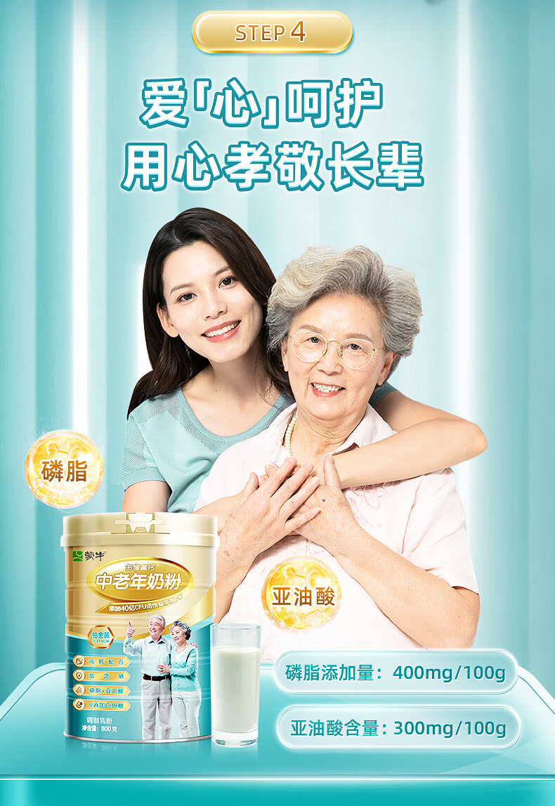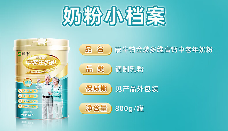 伊利欣活中老年奶粉800g*2罐=1600g礼盒装